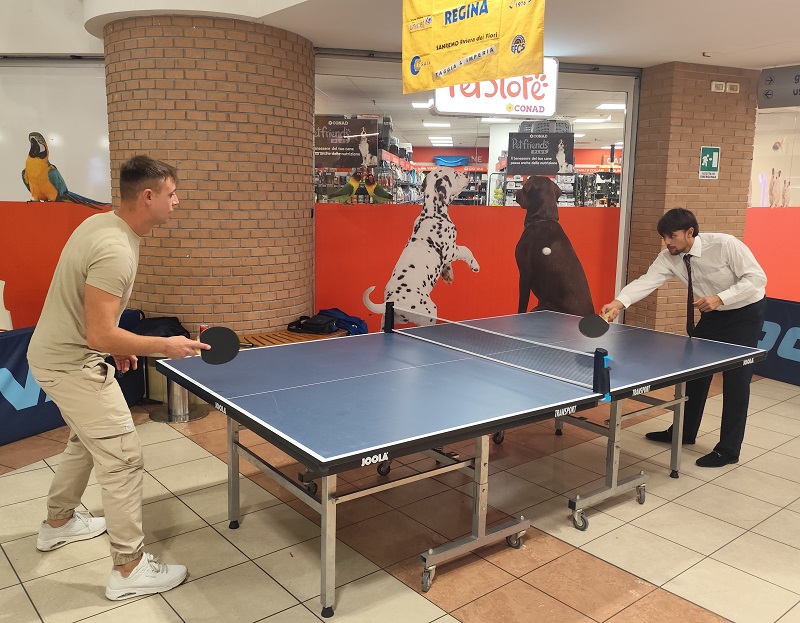 Presso la postazione pongistica sita nel piazzale centrale del Centro Commerciale di Via Privata Roggero di ArmaTaggia sono passati in visita il Vice-Sindaco di Taggia Espedito Longobardi, il Sindaco di San Lorenzo al Mare Enzo Mazzarese, la Direttrice dello Shopville Arianna Bellastro ed il pioniere del Ping-Pong rivierasco, fine anni cinquanta, Matteo Anfossi di Taggia. Tutti quanti si sono prodigati ad impugnare la piccola racchetta.