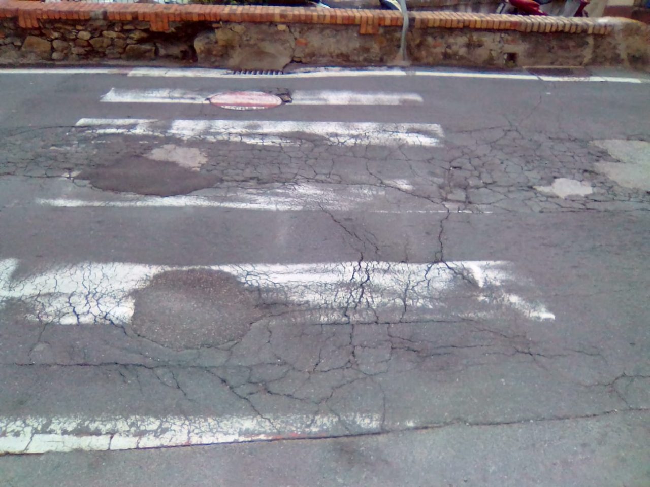 Buche avvallamenti e strisce pedonali quasi cancellate dal tempo. Via Borea, la strada che porta all’ospedale di Sanremo, è diventata un vero e proprio campo minato