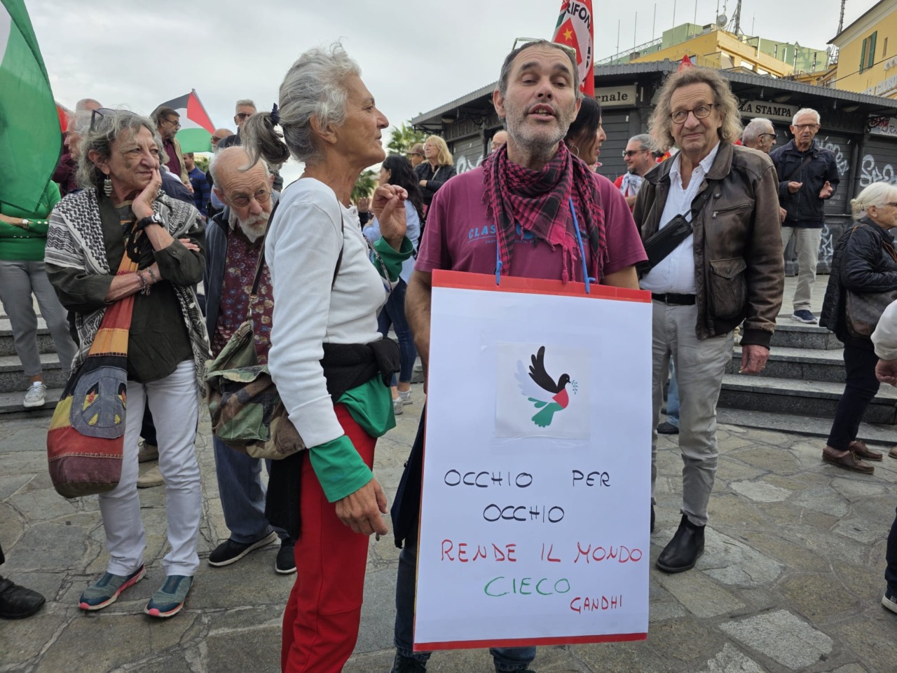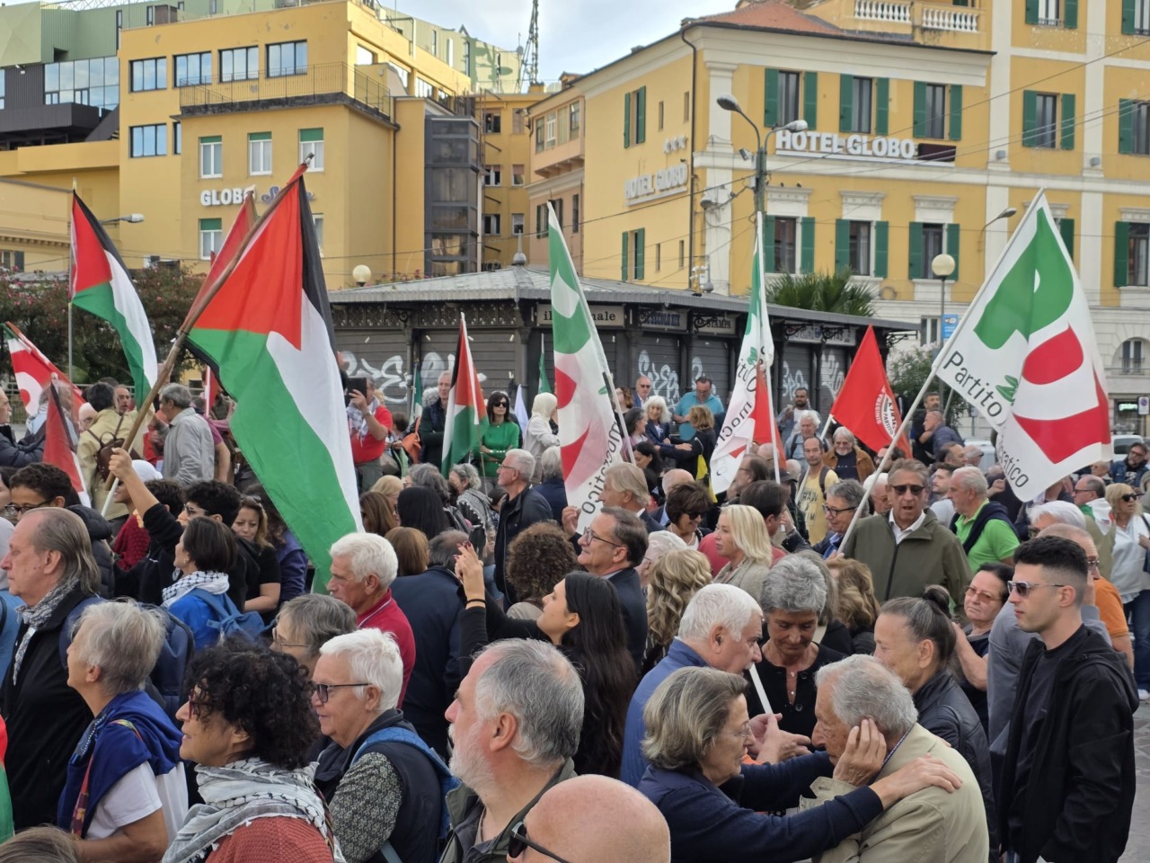 Una manifestazione Pro Paestina  è in corso questo pomeriggio in Piazza Colombo. Circa 200 persone, giovani e meno giovani con striscioni, bandiere per dare sostegno alla popolazione palestinese. Il lungo corteo sfilerà fino a Pian di Nave.