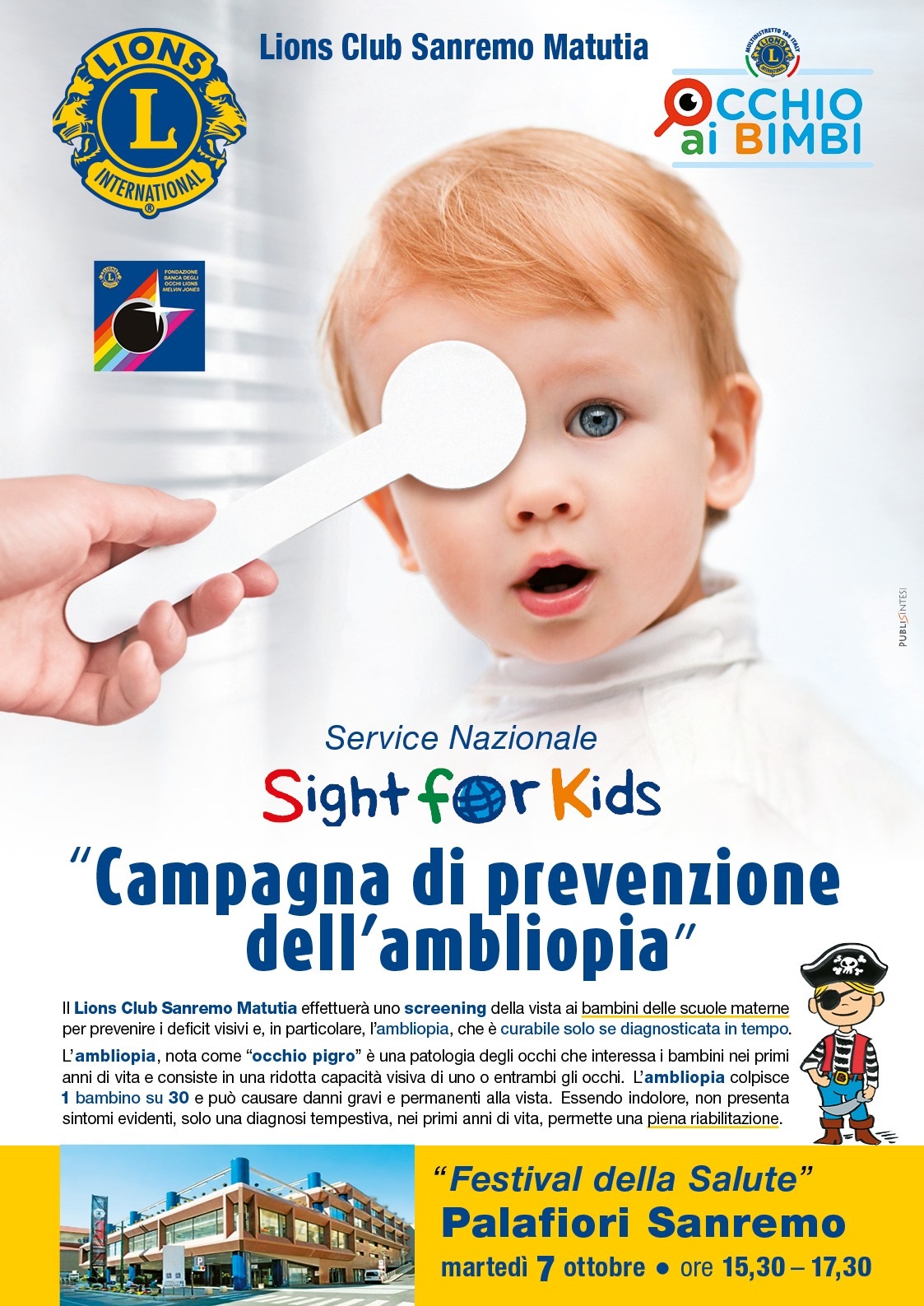 Dal 6 al 10 ottobre il Lions Club Sanremo Matutia sarà presente al Festival della Salute organizzato da ASL 1 con uno stand dedicato ai service sulla vista.