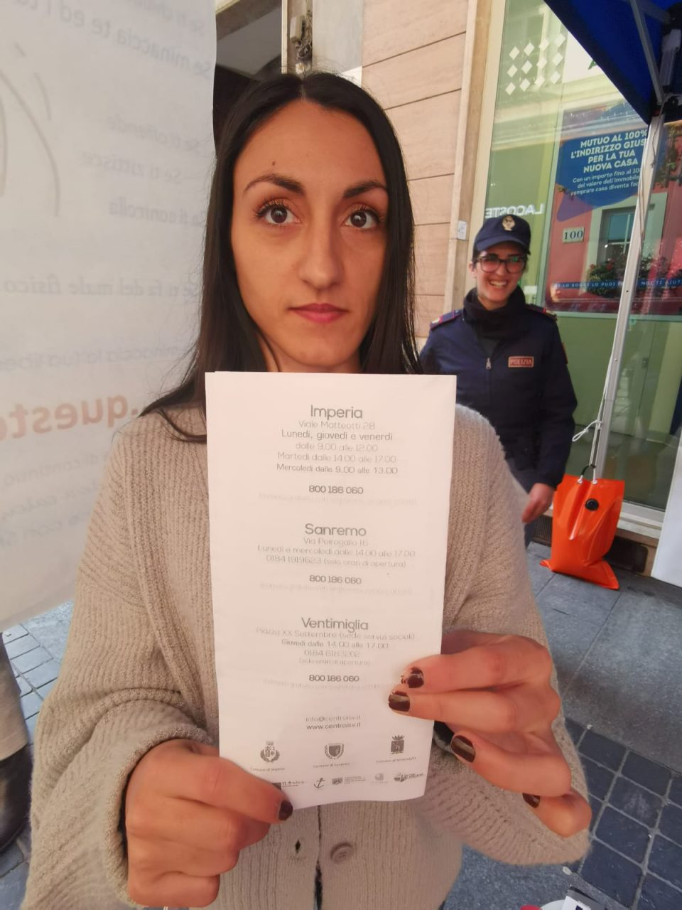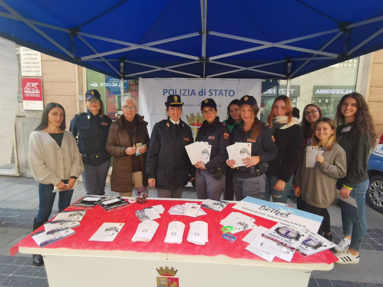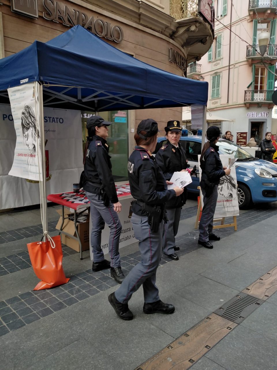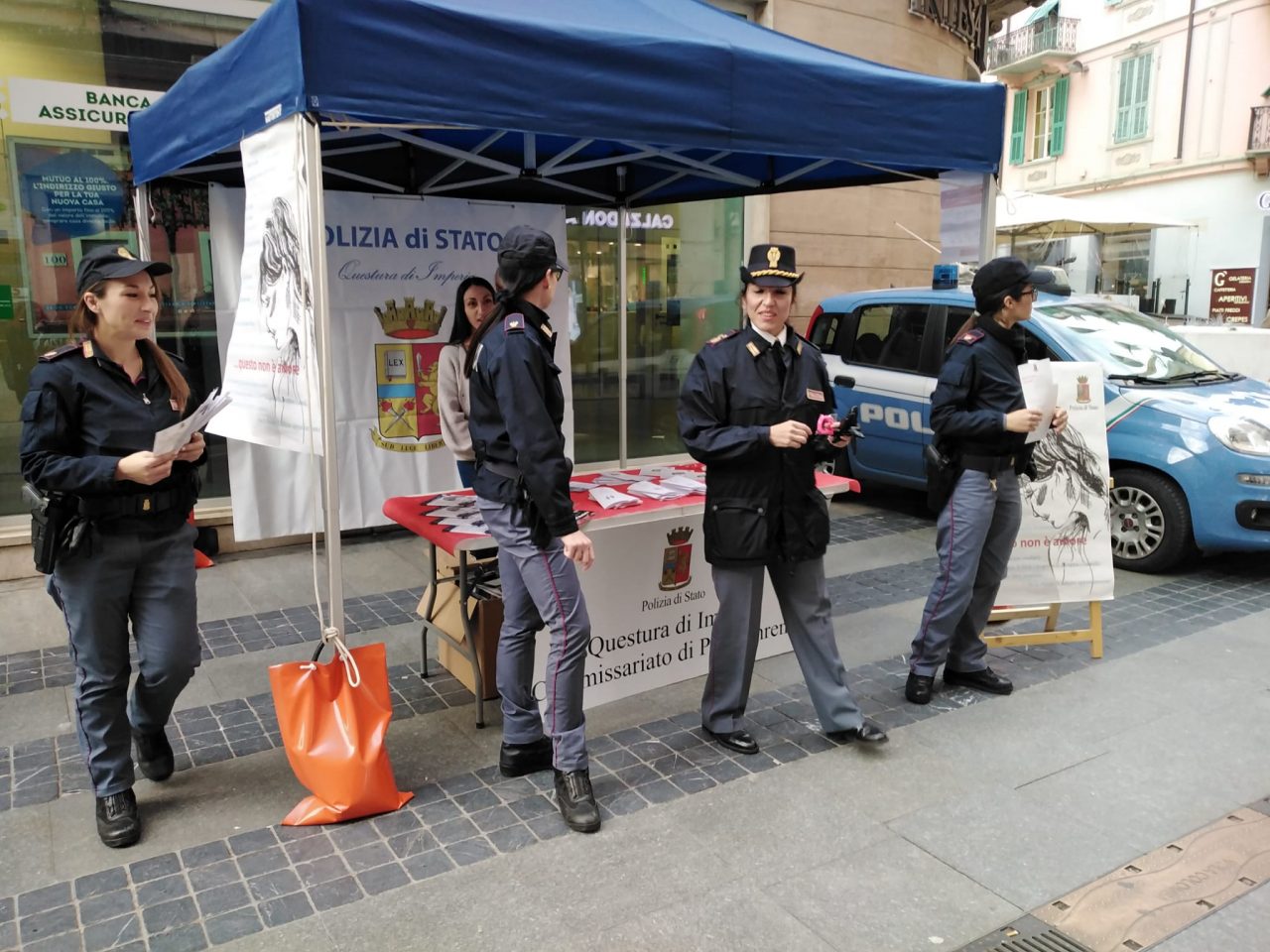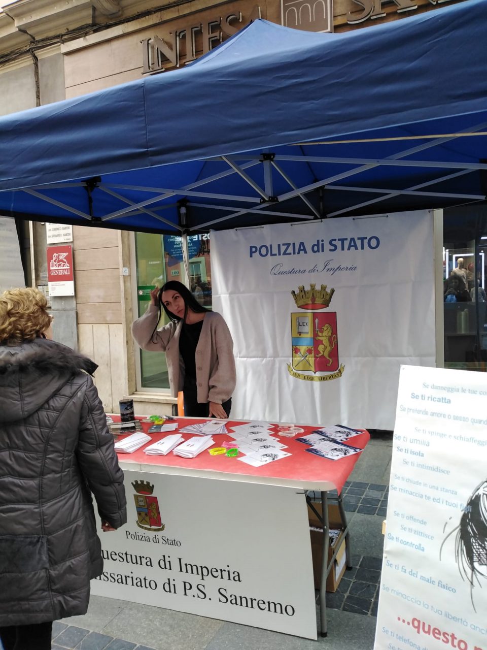 Stand della polizia in via Matteotti a Sanremo in occasione della giornata internazionale contro la violenza sulle donne. Ai passanti sono stati distribuiti gadget e brochure informative per sensibilizzare su un argomento che resta sempre di tremenda attualità.