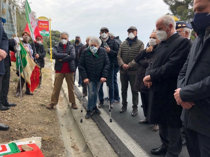 L’Istituto Storico della Resistenza e dell’Età Contemporanea di Imperia congiuntamente alle Associazioni Partigiane A.N.P.I. e F.I.V.L. di Imperia, ha organizzato l’inaugurazione del rifacimento della lapide ad Imperia in località Capo Berta (Via Aurelia). A causa di un incidente stradale detta lapide è stata distrutta e ridotta in vari pezzi ed anche la vicina edicola è stata danneggiata. Il tutto è stato ripristinato grazie all’aiuto del Comm. Sergio Cecchinel ed all’intervento del sig. Salvatore Urazza che ha provveduto al restauro dell’edicola e al decoro della lapide. Lo scoprimento della lapide è avvenuto questa mattina alla presenza delle Autorità e dei parenti di alcuni Caduti con un saluto del Sindaco e del Presidente della Provincia Claudio Scajola ed un intervento del Presidente dell’ISRECIm Giovanni Rainisio.