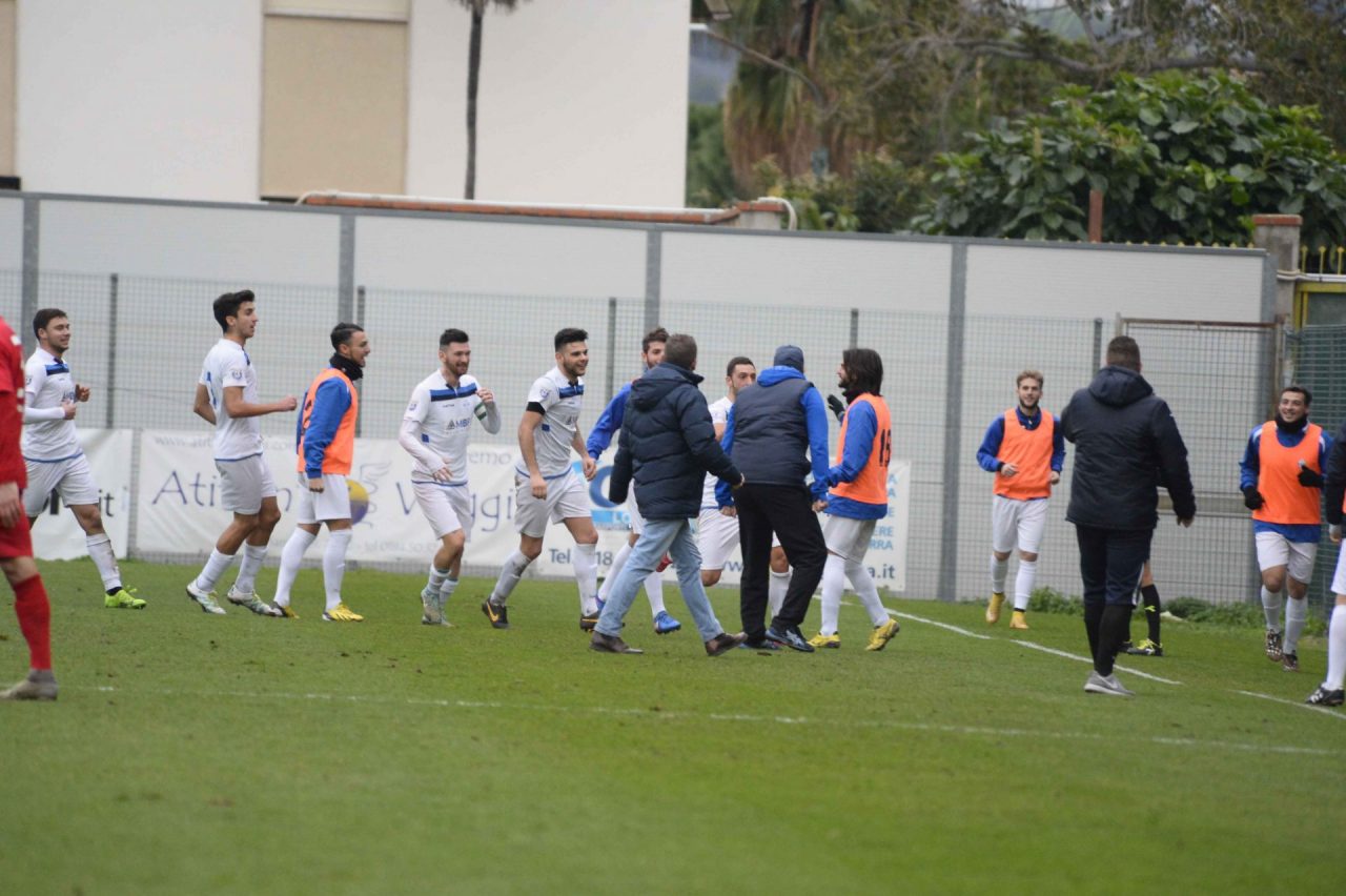 Passo falso interno per la Sanremese che, alla prima del 2018 al “Comunale”, viene superata 3-1 dall’Albissola.“Il gol subito ha spostato gli equilibri, nel primo tempo abbiamo trovato delle difficoltà ad allargare la manovra perché loro giocavano in 10 dietro la linea della palla – ha dichiarato mister Massimo Costantino a fine partita – abbiamo preso il gol ma non ci siamo disuniti, ma la cosa che dispiace è che avevamo riaperto la partita ma siamo stati precipitosi e frenetici, forse nervosi, ma è successo e ora ci lecchiamo le ferite. Dobbiamoripartire con la testa giusta e con intelligenza senza farci prendere dalle ansie. Dispiace aver perso sotto gli occhi dei nostri tifosi, ci scusiamo con loro e li ringraziamo per l’incitamento e l’incoraggiamento. Ripartiamo dall’applauso che ci hanno regalato a fine gara”.Unica nota positiva per i biancoazzurri della giornata intera è la contemporanea sconfitta del Ponsacco, superato in casa 2-1 dal Real Forte Querceta. La vetta, quindi, rimane ancora a un solo punto di distanza.