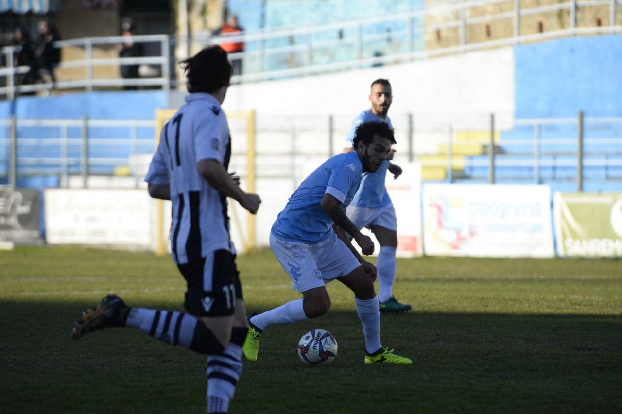 Al 44’ il primo dei due legni colpiti dalla Sanremese. Scalzi si libera di un difensore e scarica il suo mancino che, però, finisce sul montante alla sinistra del portiere. Sanremese protagonista della manovra anche nella ripresa. Ci prova Spinosa al 55’ con una conclusione da fuori, palla deviata e bloccata senza problemi da Caruso.