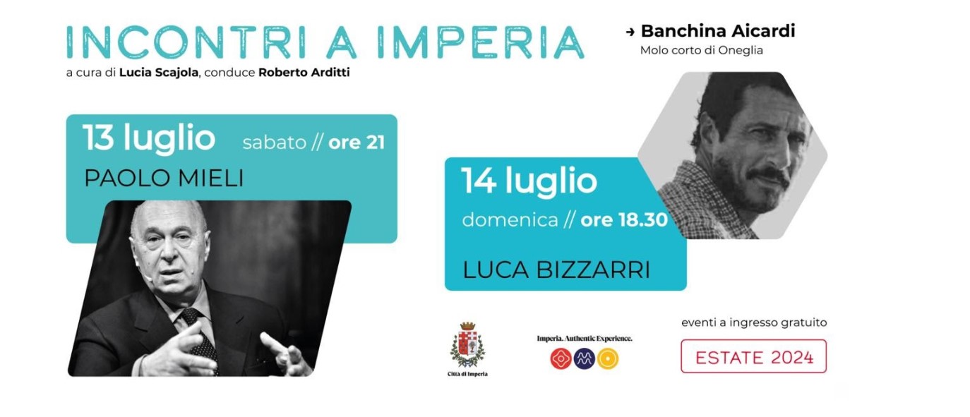 La suggestiva cornice di Banchina Aicardi a Imperia è pronta a trasformarsi per due giorni in un salotto di cultura, storia, attualità e politica con due personalità d’eccezione: Paolo Mieli e Luca Bizzarri. Saranno infatti loro i protagonisti di “Incontri a Imperia”, in programma sabato 13 e domenica 14 luglio nell’ampliata e riqualificata area eventi del porto di Oneglia, a due passi dalle iconiche gru sul molo corto.