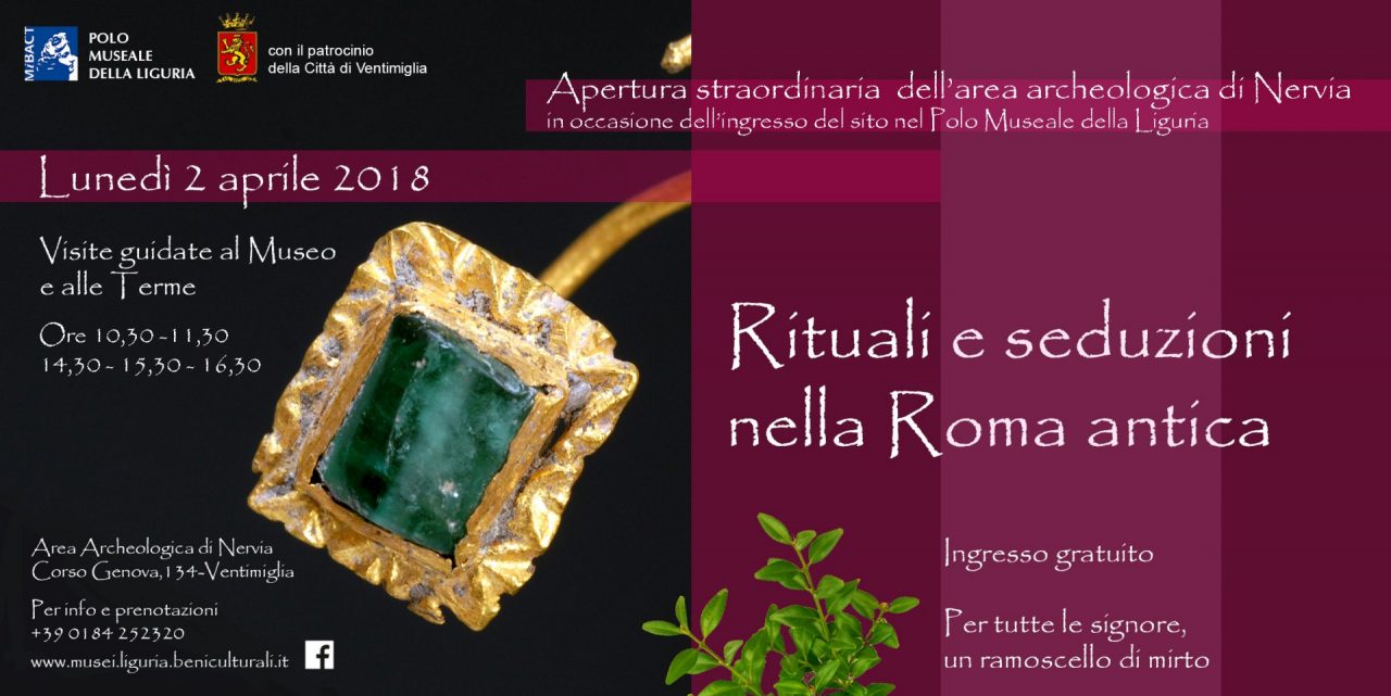 In occasione dell’ingresso dell’area archeologica di Nerviano all’interno del Polo Museale Ligure, lunedì 2 aprile è in programma nel luogo una giornata speciale: Rituali e seduzione nella Roma antica.