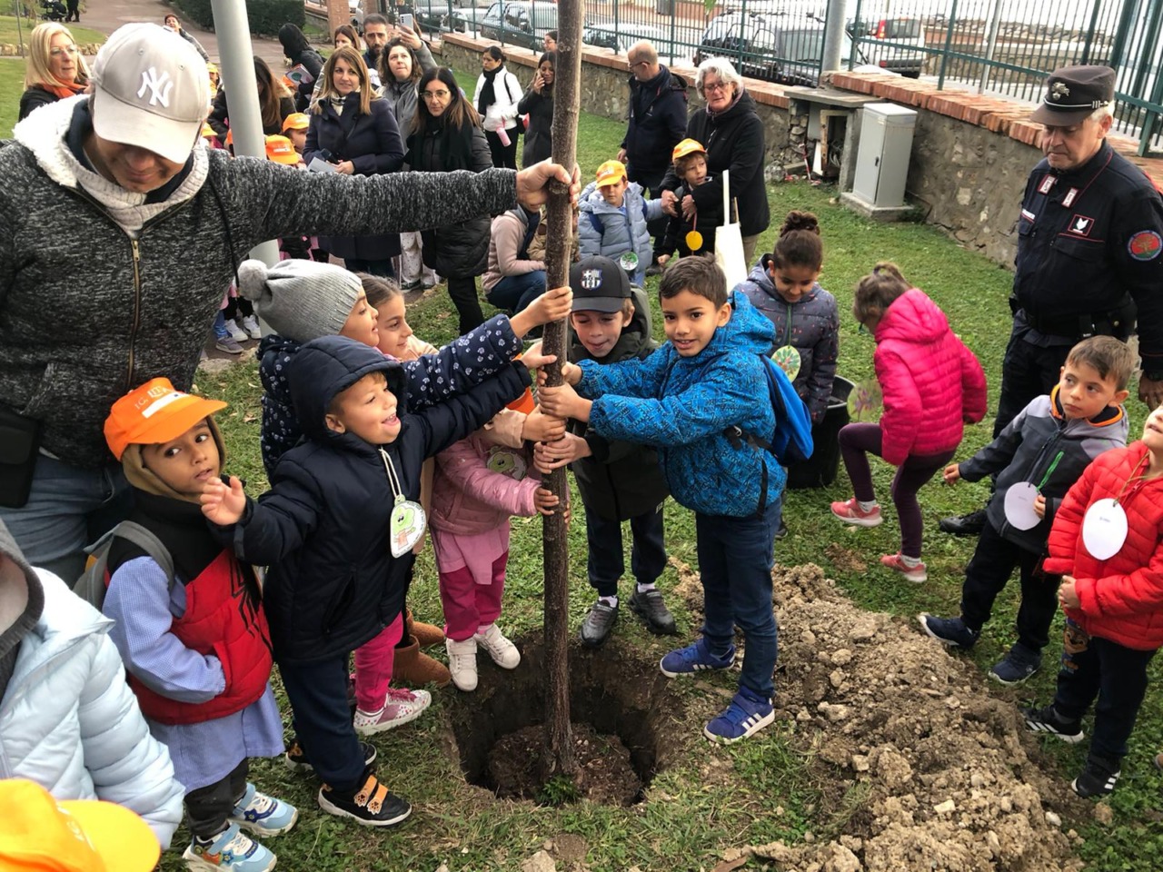 Nel corso dell’evento sono state piantate due nuove piante, un gesto simbolico che unisce educazione ambientale e cura degli spazi verdi della città. I bambini presenti hanno collaborato alle operazioni di messa a dimora, trasformando la cerimonia in un vero momento di partecipazione collettiva.