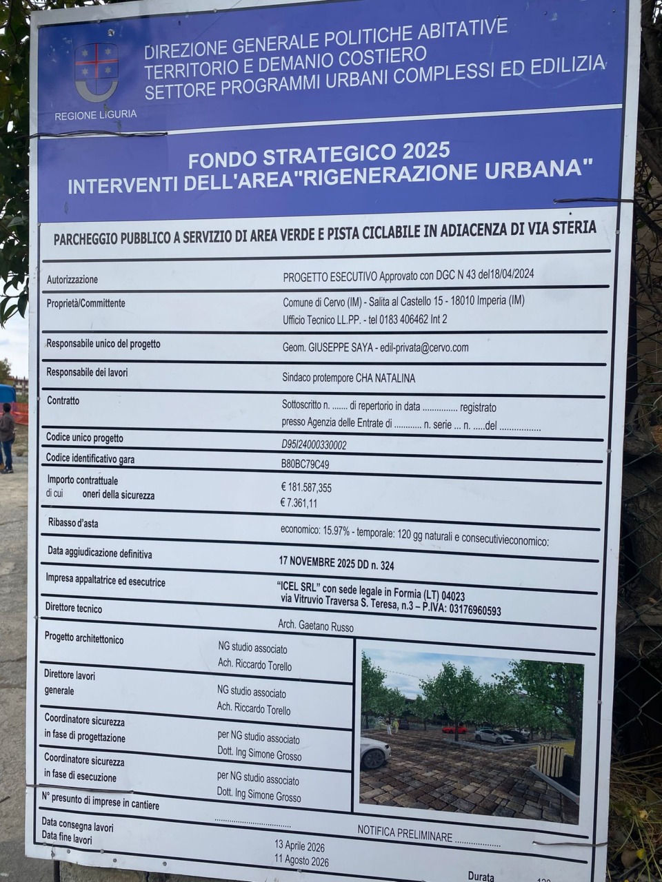 “Interveniamo su un’area rimasta per anni ai margini, avviando un percorso di valorizzazione che interesserà progressivamente tutta la zona di via Steria – conclude il sindaco di Cervo Natalina Cha -. Grazie a questo intervento restituiremo alla nostra comunità spazi più decorosi, funzionali e sostenibili, migliorando la qualità urbana e creando nuove opportunità di collegamento e fruizione del territorio. Un sentito ringraziamento va a Regione Liguria per il sostegno al nostro Comune”