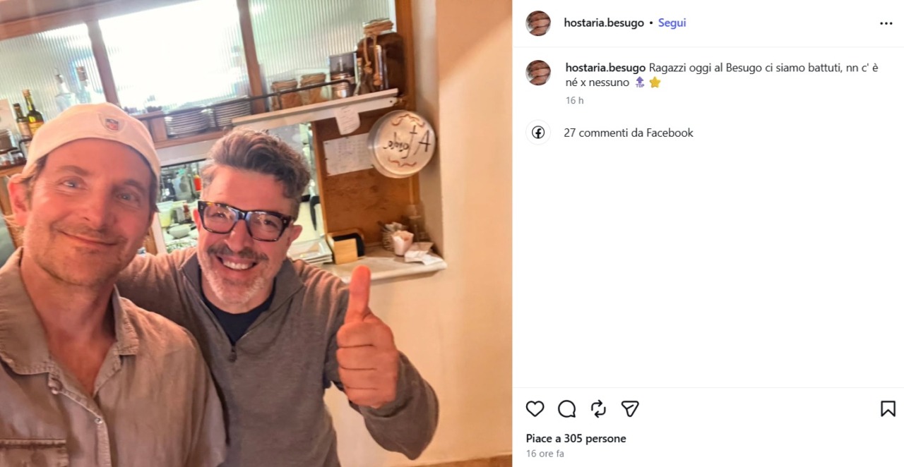 A rivelare la presenza di Cooper nel suo locale, aperto nel 2019 nella suggestiva location di Oneglia, è stato il titolare Marco Conte, postando una foto che lo ritrae con l’attore 50enne sulla sua pagina facebook: “Ragazzi oggi al Besugo ci siamo battuti, non ce n’ é per nessuno”.