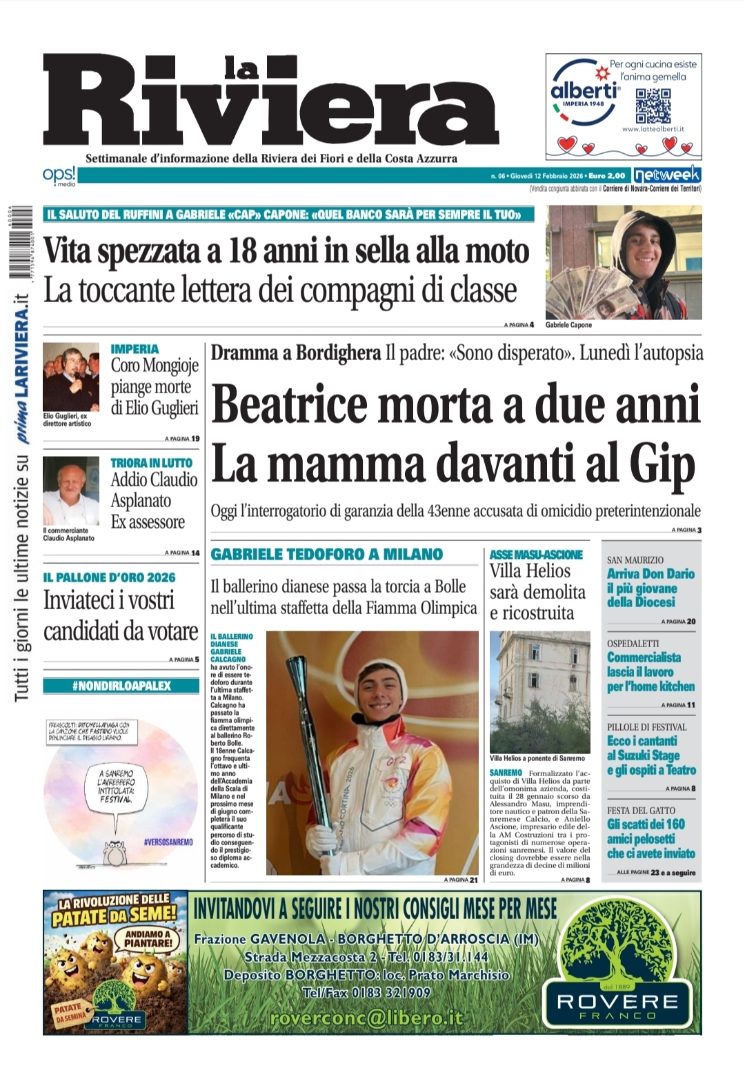 Il nuovo numero de La Riviera è in edicola come ogni giovedì da 35 anni con interviste, approfondimenti e notizie esclusive dalla provincia di Imperia. Eccone alcune