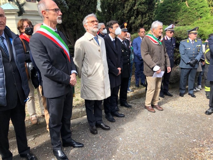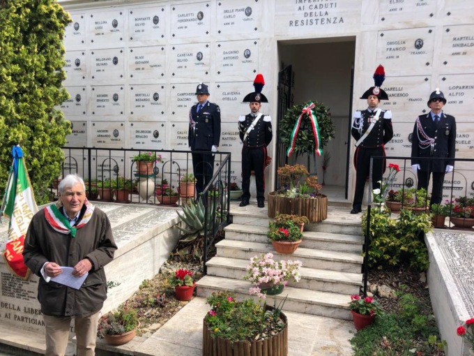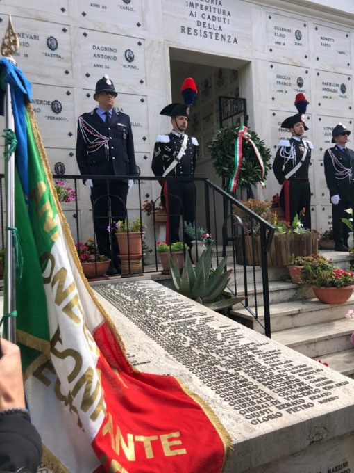 Celebrata questa mattina la Festa della Liberazione a Imperia. Presenti i colonnelli di Carabinieri e Guardia di Finanza, il Questore di Imperia Giuseppe Peritore, il Prefetto Alberto Intini, vice sindaco di Imperia Giuseppe Fossati e l’assessore Alessandro Piana per Regione Liguria. L’anniversario del 25 Aprile è stato celebrato presso il mausoleo dei caduti della Resistenza nel cimitero di Oneglia per poi proseguire con la tradizionale posa della corona in piazza della Vittoria.