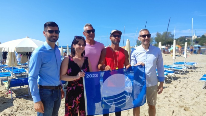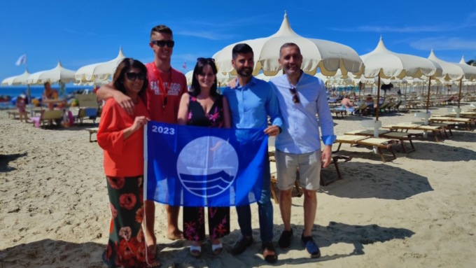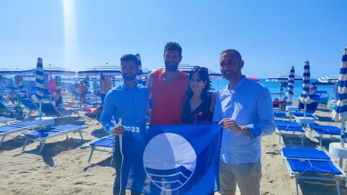Presenti gli assessori al turismo, demanio e ambiente, Barbara Dumarte, Manuel Fichera e Daniele Festa, che hanno portato il prestigioso vessillo che caratterizza la qualità delle acque e dei servizi nei comuni italiani. Piccola cerimonia in piazza Tiziano Chierotti, con l’alzabandiera dello stemma principale, alla presenza anche dell’Associazione Nazionale Marinai d’Italia e della Capitaneria di Porto.