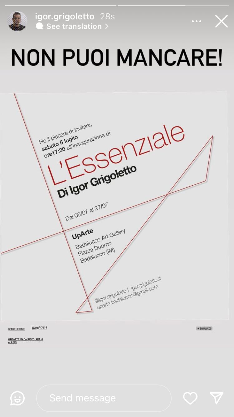 Domani, 6 Luglio, si inaugura la mostra personale di Igor Grigoletto “L’essenziale” allo spazio espositivo UpArte di Badalucco.