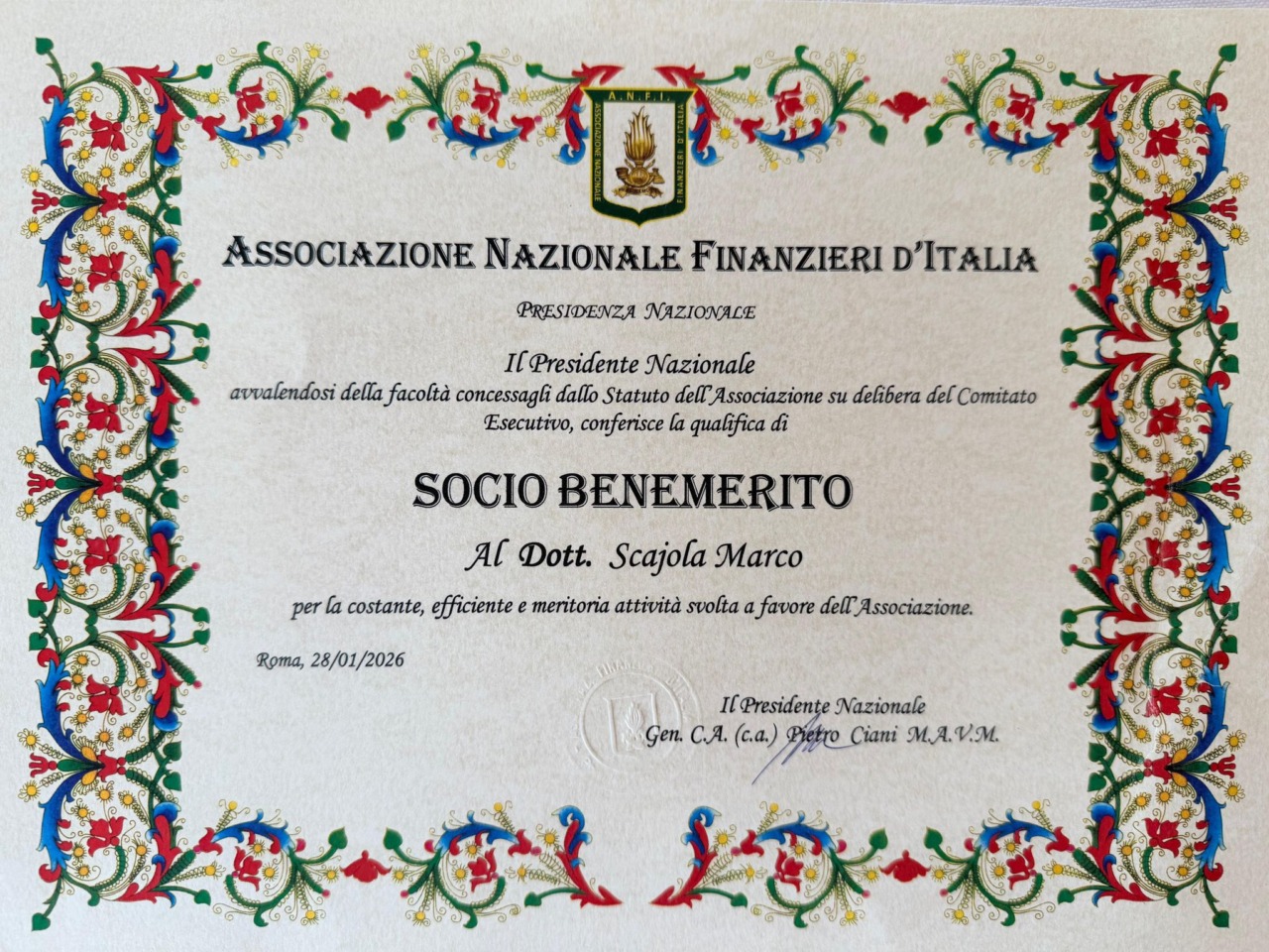 Marco Scajola socio benemerito dell’ANFI