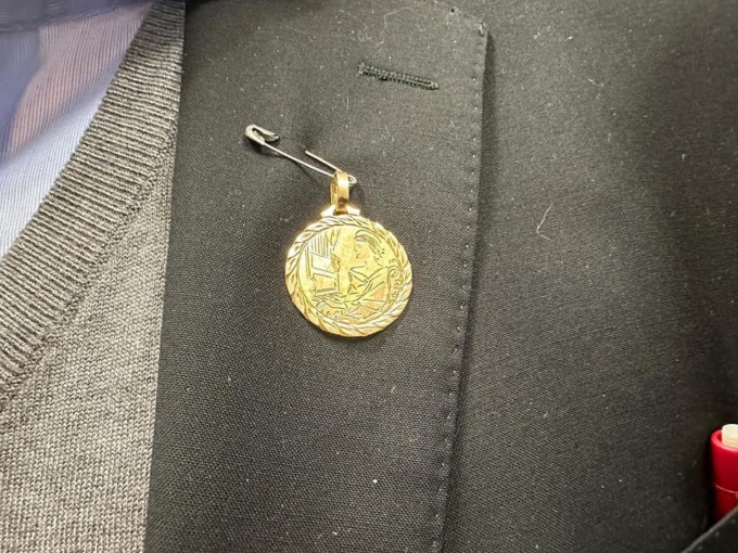Medaglia d'oro ad Angelo Lupi peri 50 anni di presidenza della Banda Musicale di Ceriana