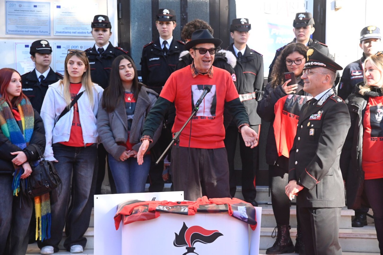 Una copia degli scatti, riprodotti anche su t-shirt rosse grazie al supporto di una tipografia locale, è stata donata agli studenti presenti, con l’obiettivo di far continuare nel tempo il messaggio di prevenzione e supporto alle vittime di violenza.