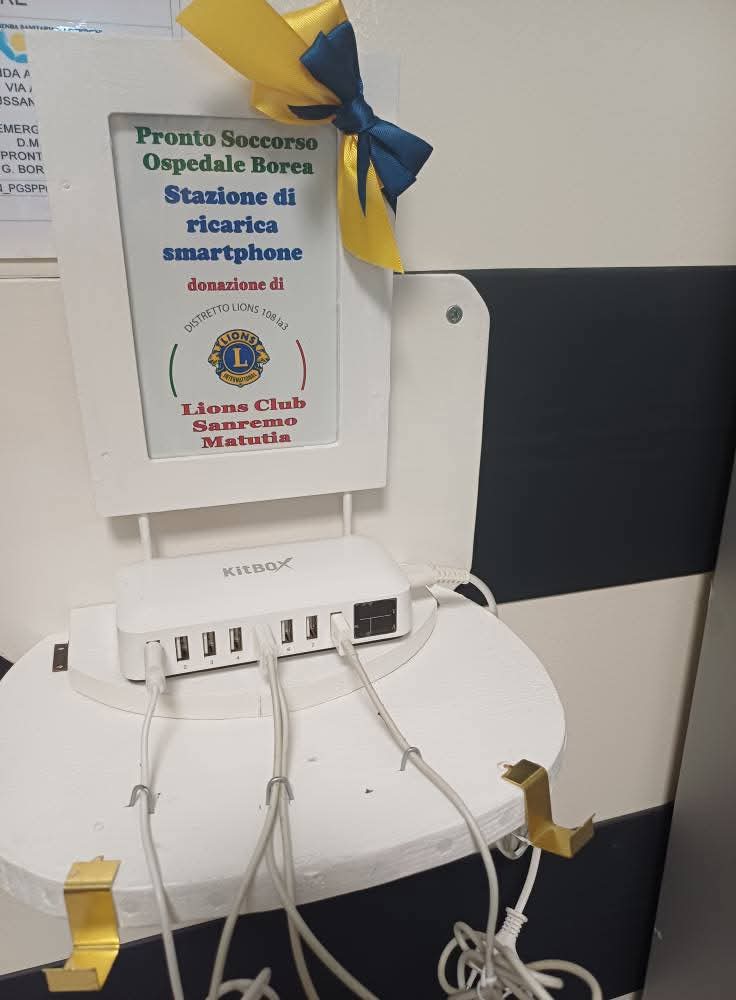 Nella mattinata di oggi il Lions Club Sanremo Matutia ha donato al Pronrto soccorso dell’Ospedale Borea di Sanremo una “power box”, che consentirà di ricaricare il proprio telefono cellulare durante le attese in pronto soccorso, sia per essere visitati sia in attesa di parenti o amici ricoverati.