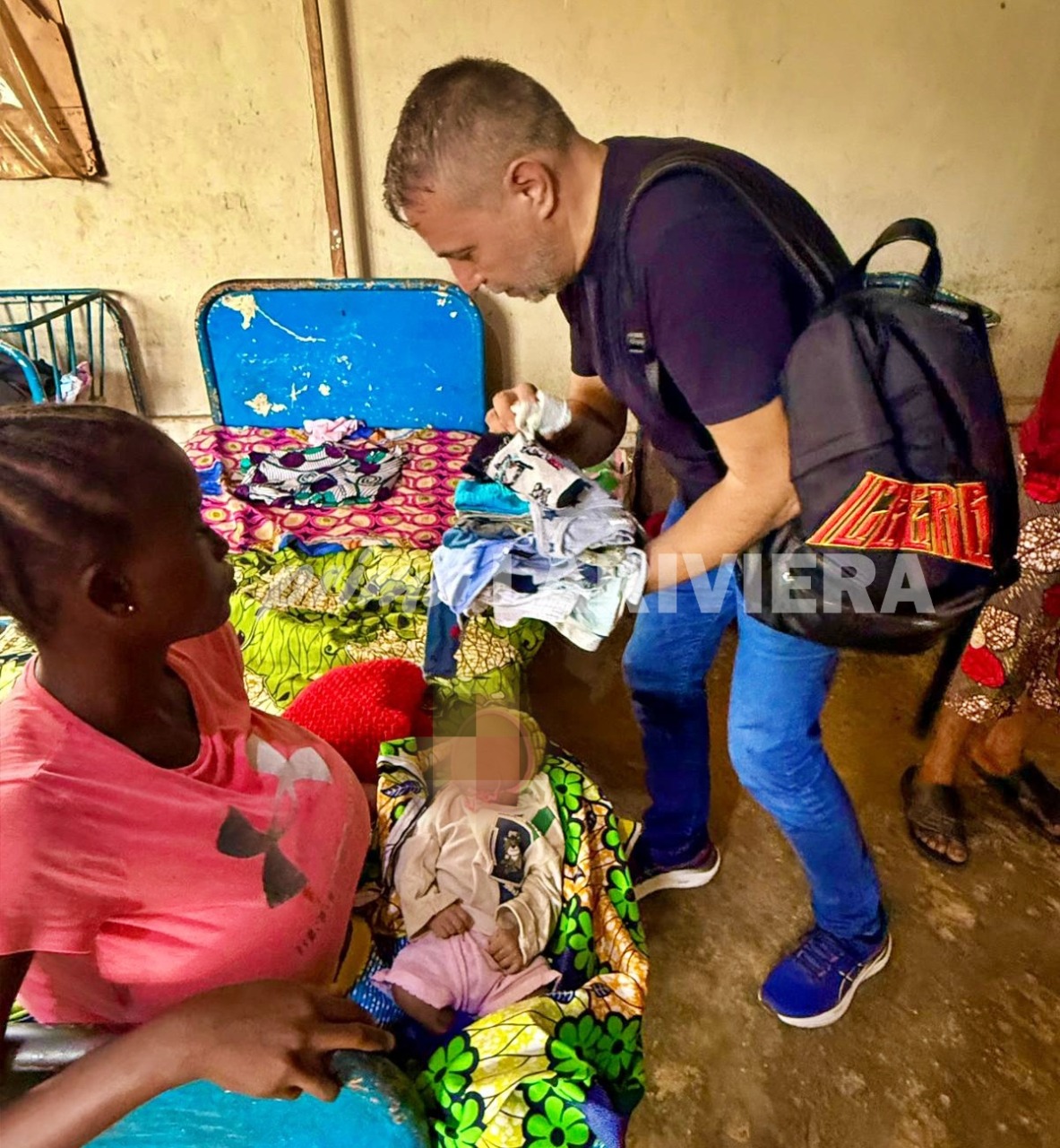 Vincenzo ha contribuito raccogliendo e consegnando vestiti per neonati affrontando un percorso di circa venti chilometri su strade quasi inesistenti per raggiungere questo luogo remoto, privo di elettricità, acqua corrente e delle più elementari necessità. Di fronte alle precarie condizioni igienico-sanitarie della struttura, sta nascendo il progetto di sostenerne una ristrutturazione dignitosa, in grado di garantire maggiore sicurezza, igiene e possibilità di cura alle mamme e alle popolazioni della giungla che vive in quel sito.