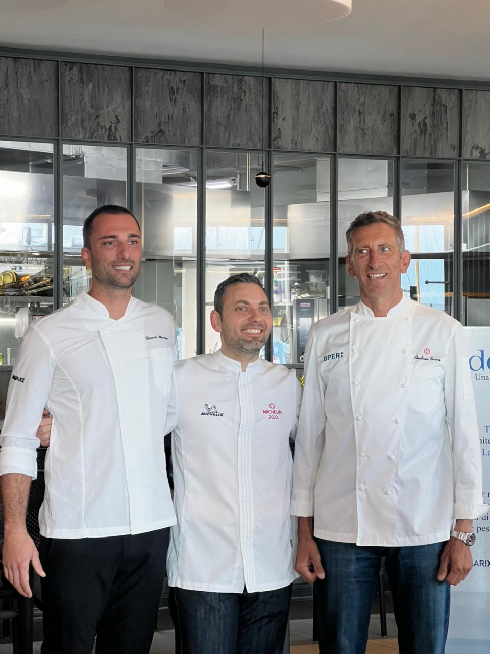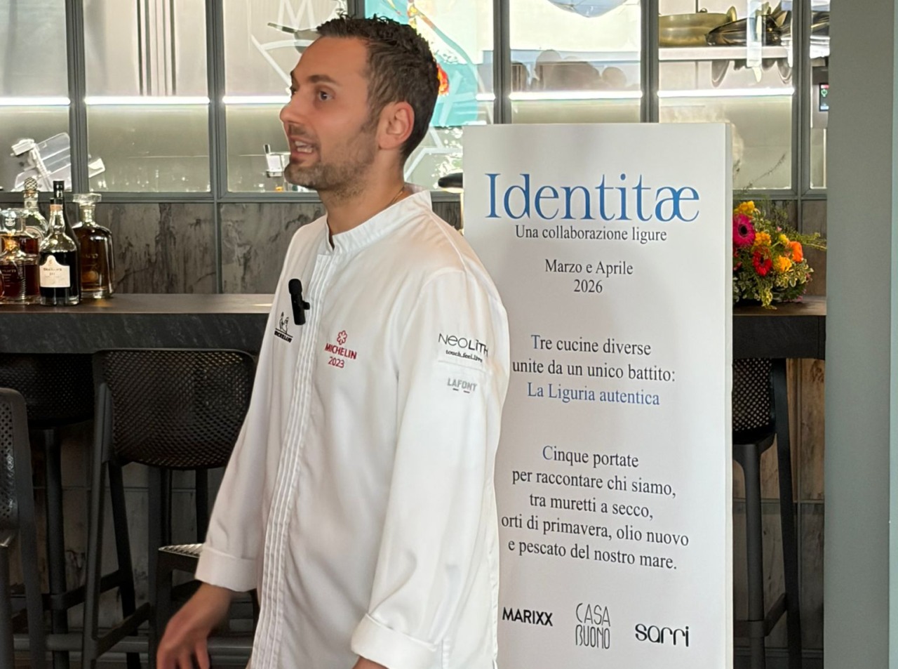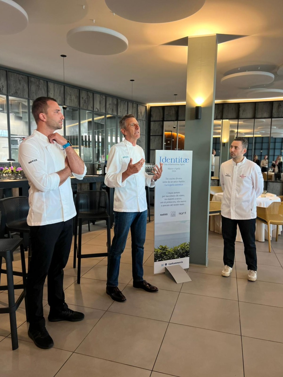 “Tre cucine diverse ma unite dallo stesso battito: La Liguria autentica – lo slogan scelto dai tre chef, tra i migliori del panorama ponentino – Cinque portate per raccontare chi siamo, tra muretti a secco, orti di primavera, olio nuovo e pescato del nostro mare”. Questa “Collaborazione ligure” prende il nome di Identitae.