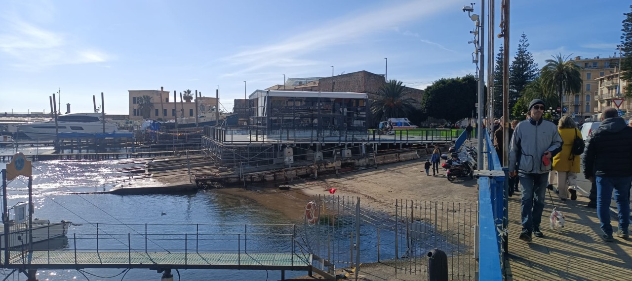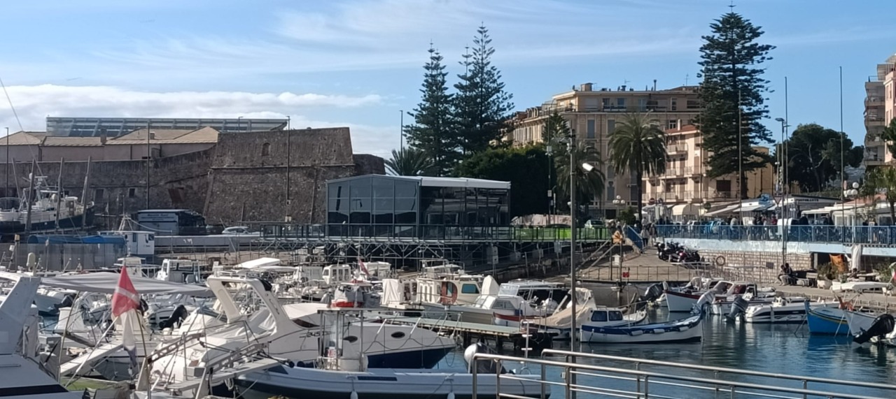 E’ stata realizzata una casa di vetro su una piattaforma installata su uno degli scivoli dei cantieri navali al porto vecchio di Sanremo. Massimo riserbo sulla finalità della struttura se sarà utilizzata dalla stessa Rai per collegamenti o trasmissioni pomeridiane o se è stata allestita da uno dei main sponsor del Festival di Sanremo 2026 oppure da una radio. Certo è che la figura scenica e il panorama sono davvero imbattibili.