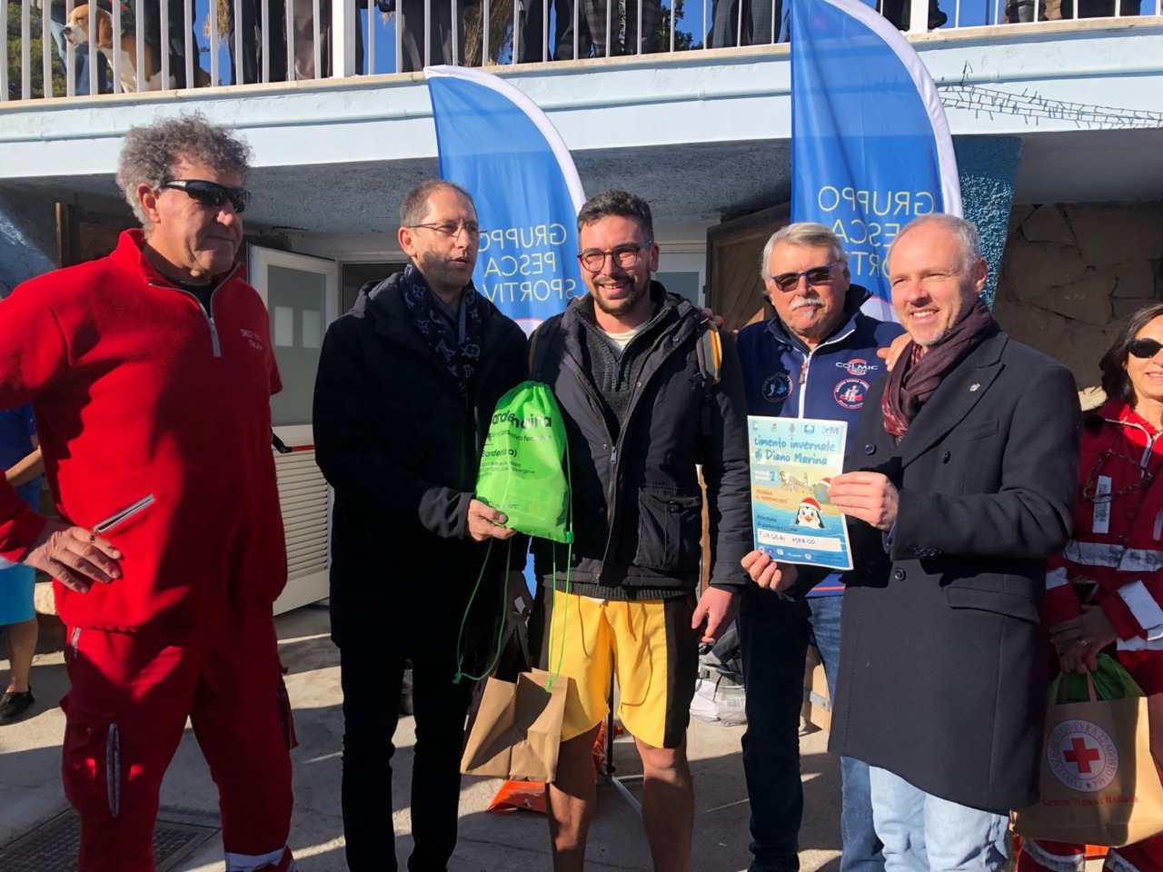 Se le fognature di Sanremo hanno stoppato il tradizionale Cimento invernale della Città dei fiori, a Diano Marina si è registrato il percorso inverso, con il Cimento che torna dopo 13 anni. Leo Raiola, 6 anni, alla sua prima volta, è il più giovane partecipante. Elisabetta Dena, classe ’49, da Loano, la più anziana. Il “cimentista” giunto da più lontano è stato Marco Forgeri, che vive a Londra.
