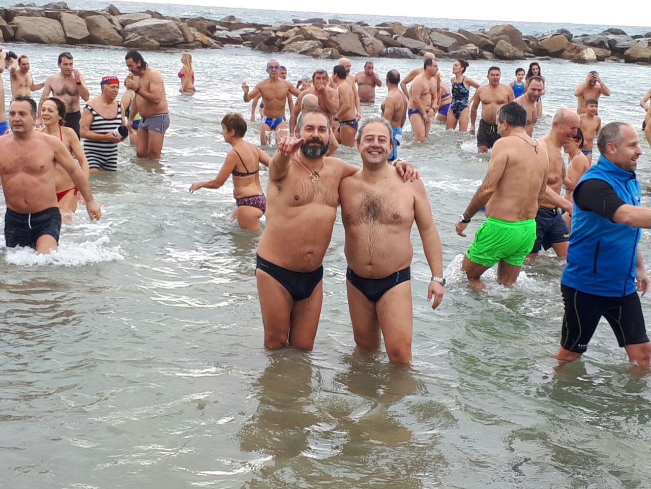 In 150 tra bambini, giovani e meno giovani sanremesi si sono tuffati questa mattina nel gelido specchio d’acqua dei bagni Tahiti di Sanremo. Al tradizionale bagno del primo dell’anno non mancano mai personaggi di spicco. Quest’anno a fare da padrone della scena il 94enne Attilio Chiodo, medico in pensione, che senza temere il freddo si è tuffato con l’aiuto di alcuni altri bagnanti.