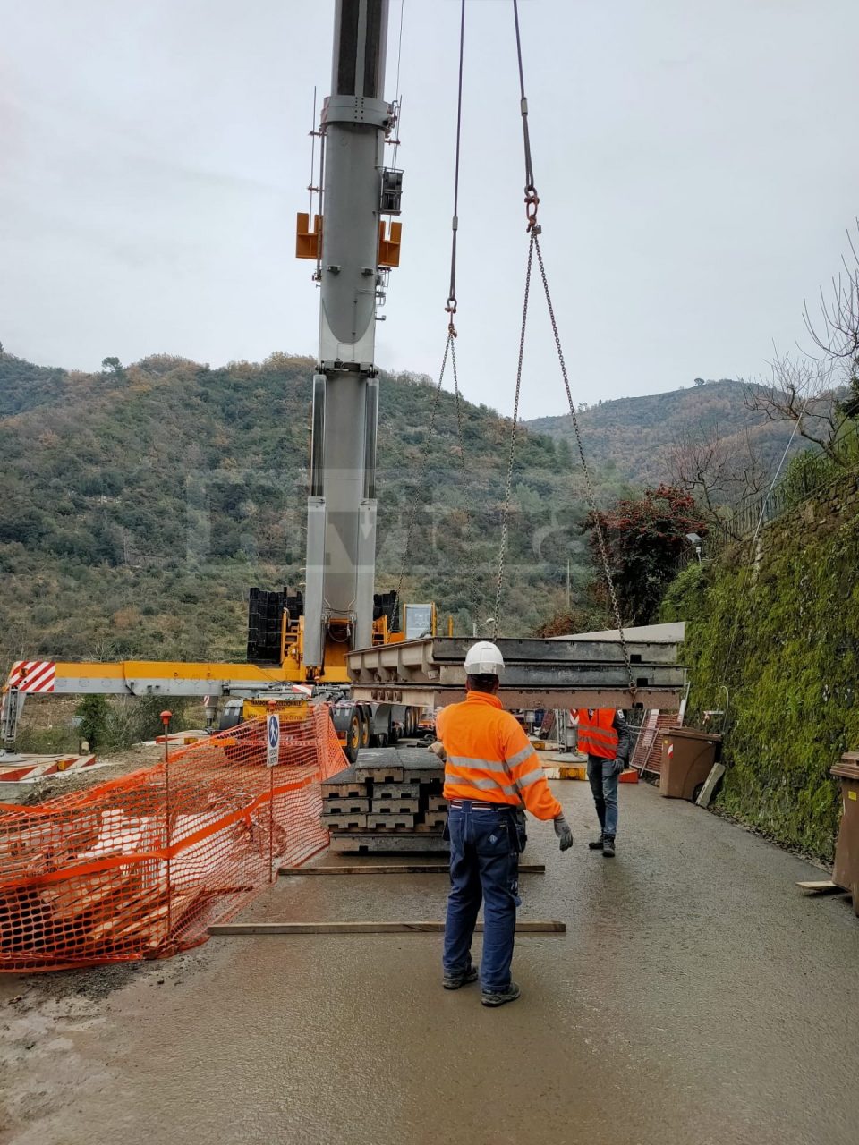 E’ iniziata oggi, a Rocchetta Nervina, in alta val Nervia, l’installazione del ponte “Bailey” (di tipo militare), che servirà per strappare il paese di 300 abitanti dall’isolamento venutosi a creare, il 27 novembre scorso, dopo il crollo di un tratto della provinciale 68. Sul posto è al lavoro una gru del peso di circa 100 tonnellate.