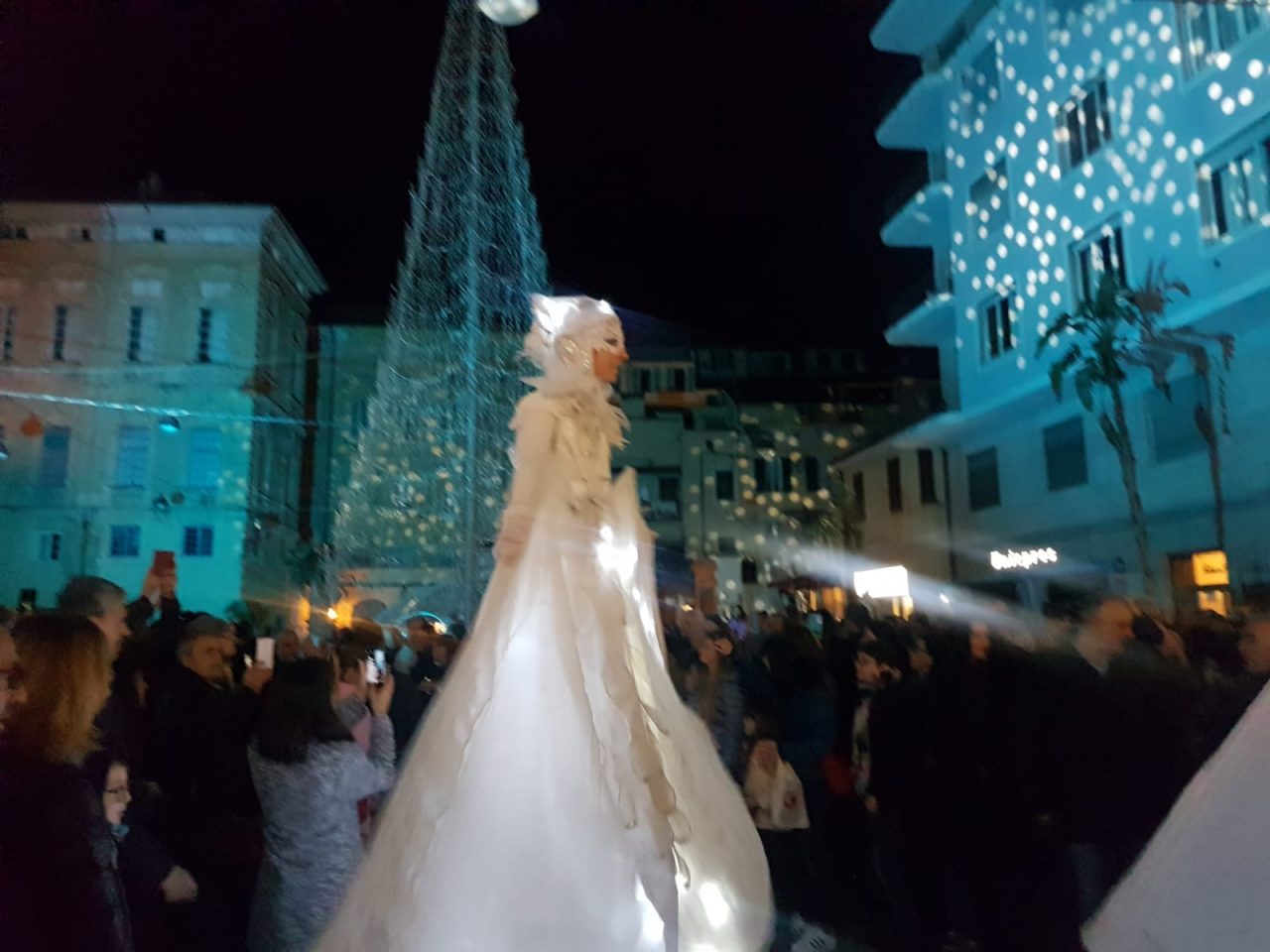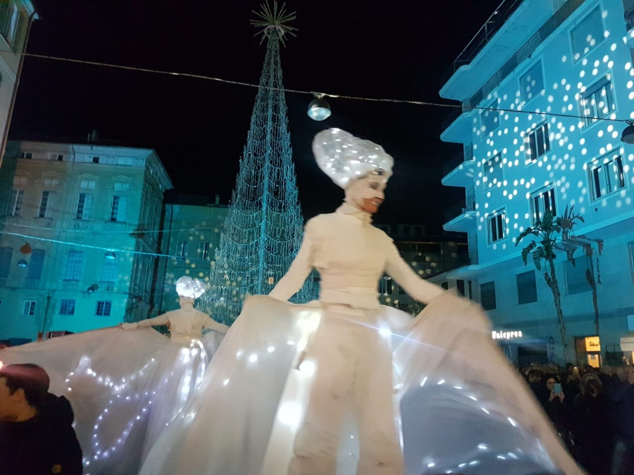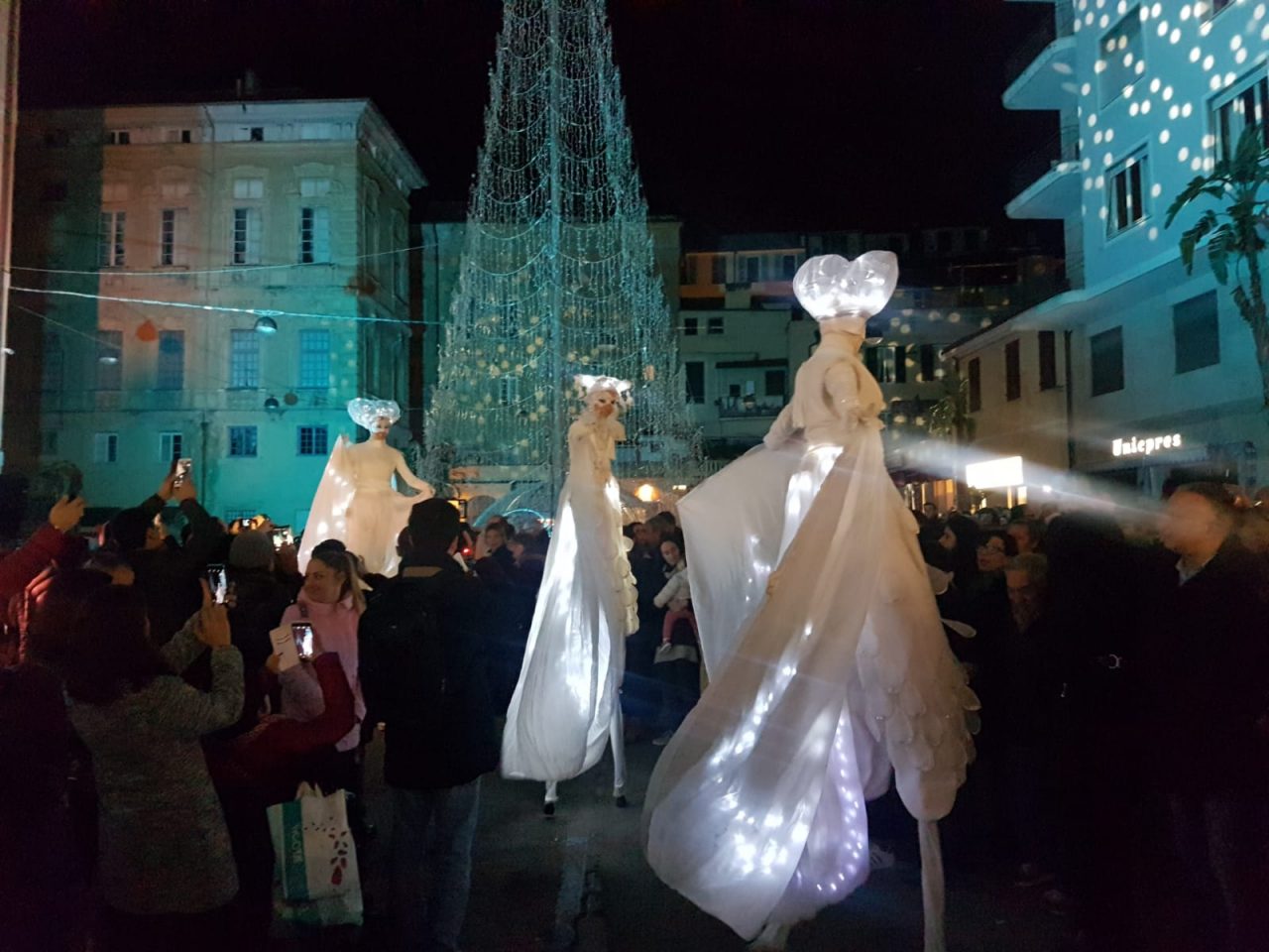 Accese le 28mila lucine a led che compongono l’albero di Natale di piaza Borea d’Olmo a Sanremo. L’accensione ufficiale oggi alle 18 alla presenza di tutta l’amministrazione comunale. L’attesa dell’accensione è stata allietata da uno spettacolo di luci con i Cristal Wings, trampolieri vestiti di bianco e illuminati da tante piccole lucine. All’accensione delle luminarie natalizie hanno assistito circa 300 persone. Uno spettacolo suggestivo per grandi e piccini che hanno risposto all’invito del sindaco (LEGGI QUI)