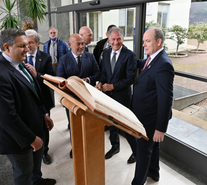 Il Principe è a Genova in occasione della Festa della Bandiera e del conferimento della cittadinanza onoraria. Dopo la visita di Euroflora 2022 con le autorità regionali e cittadine, il Principe Alberto ha reso omaggio all’Ospedale Gaslini dove è stato accolto dal presidente Edoardo Garrone, dal direttore generale Renato Botti, dal direttore sanitario Raffaele Spiazzi, insieme ad una delegazione di operatori e degenti dell’Ospedale pediatrico. Presso la vetrata d’ingresso ha scritto una lunga dedica agli operatori del Gaslini sul libro storico delle firme dei visitatori illustri – dal 1938 ad oggi.