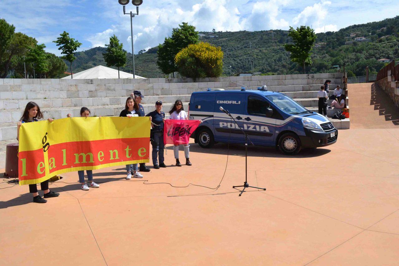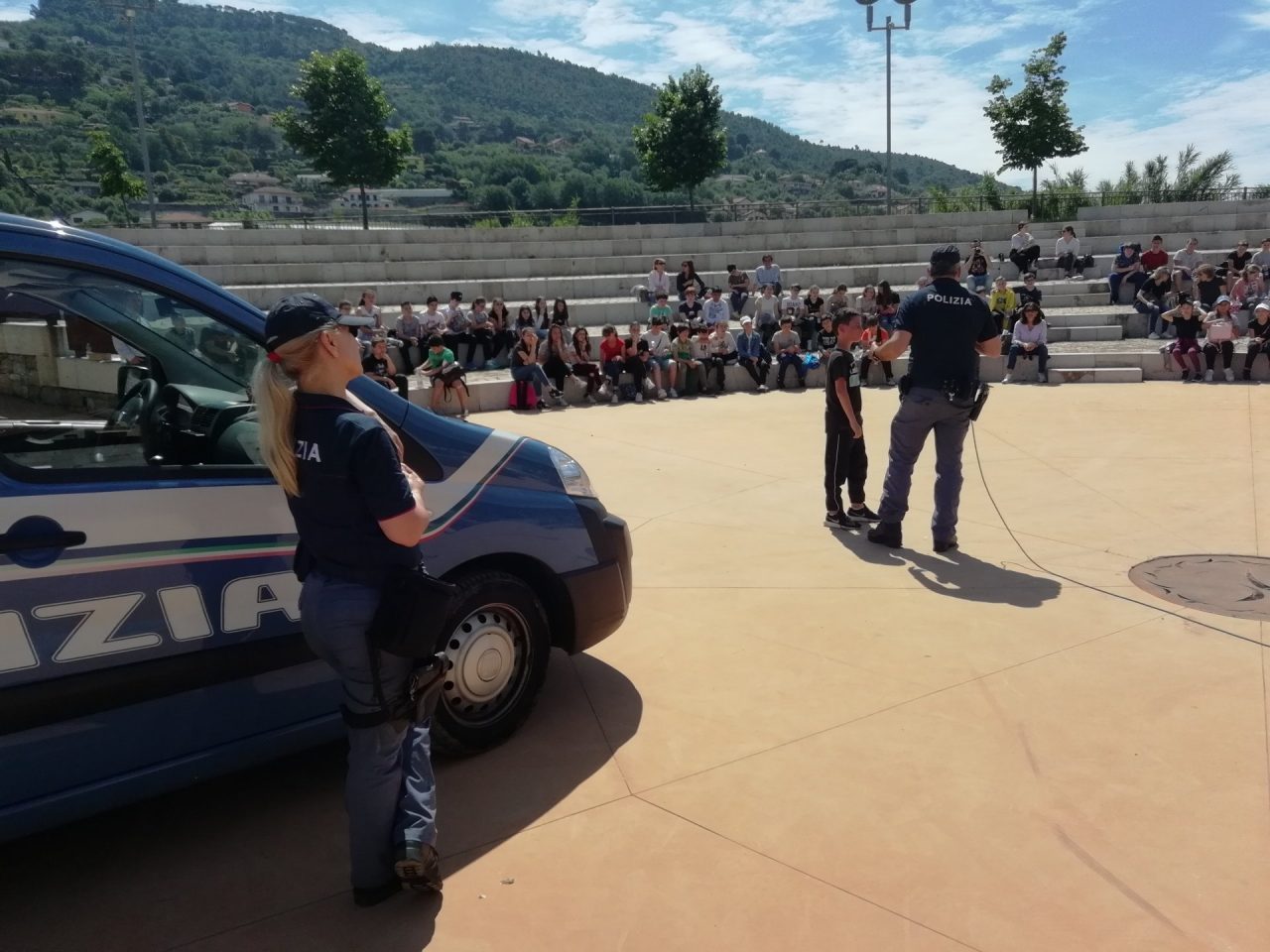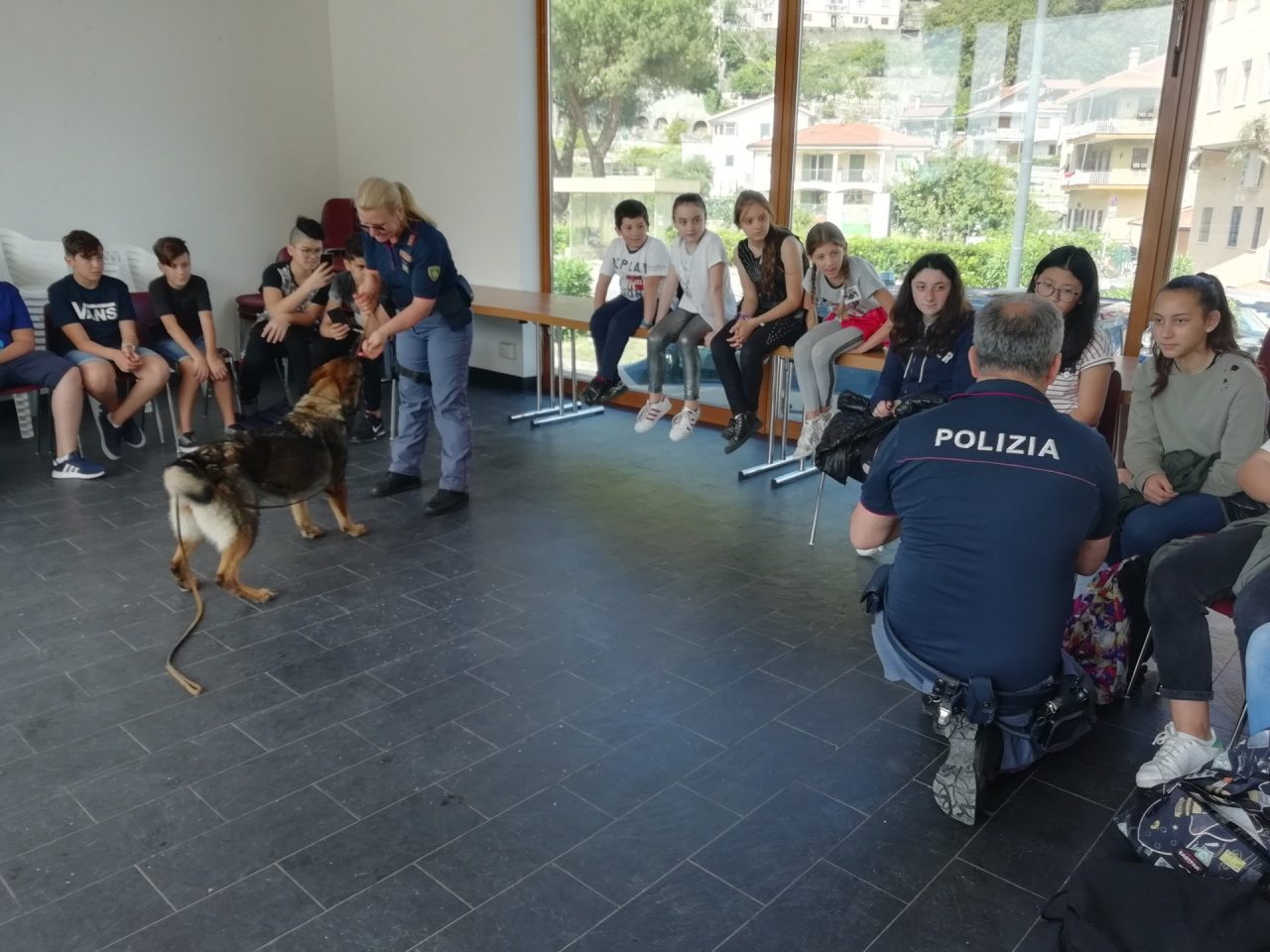 Oltre 150 ragazzi e una ventina fra organizzatori e addetti ai lavori hanno potuto ammirare l’esibizione di una squadra del reparto cinofili, appositamente arrivata da Genova per volere del Questore di Imperia, dr. Cesare Capocasa, da sempre impegnato nel promuovere e favorire gli incontri della Polizia di Stato con i giovani in tutte le scuole della provincia e la divulgazione della legalità.