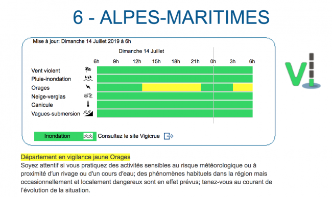 È allerta gialla questa domenica per il dipartimento francese delle Alpi Marittime, a causa dei temporali che si intensificheranno a partire dalla tarda mattinata. Meno colpita la fascia costiera, dove qualche acquazzone potrebbe verificarsi questa sera, motivo per cui Meteo France ha esteso l’allerta anche a domani notte, dalle 3 alle 6.