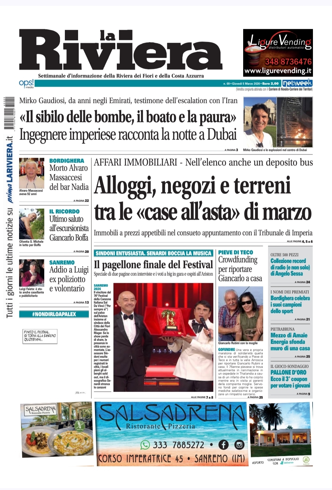 Il nuovo numero de La Riviera è in edicola come ogni giovedì da 35 anni con interviste, approfondimenti e notizie esclusive dalla provincia di Imperia. Eccone alcune