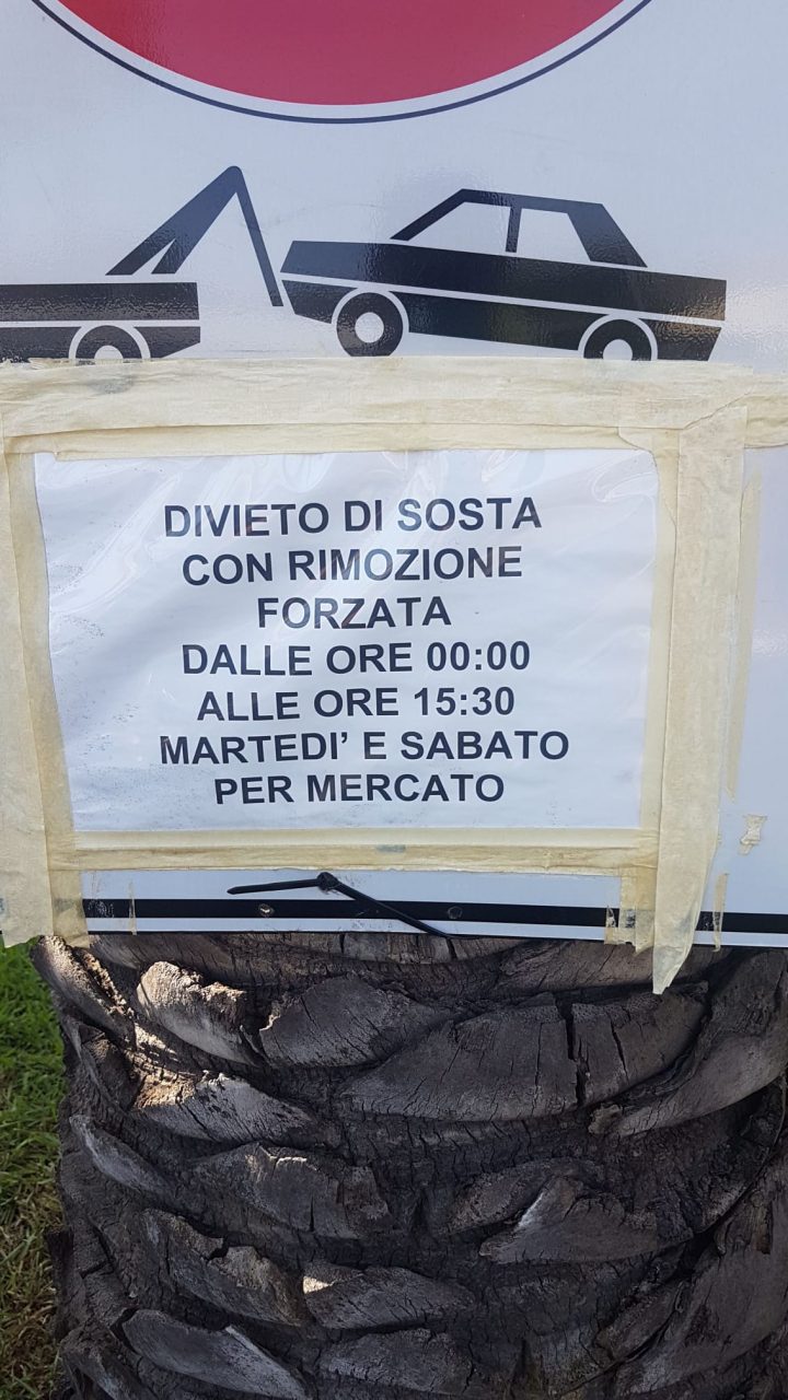 Gli ambulanti questa mattina si sono trovati alcune macchine parcheggiate proprio dove dovevano allestire i banchi. Le automobili sono tutte con targa straniera. I cartelli di divieto di parcheggi sono solo scritti in italiano e attaccati su alcune palme, sono difficili da vedere.