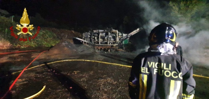 Una macchina trituratrice dell’impianto di compostaggio per scarti vegetali, di frazione Beuzi, a Sanremo, è andata distrutta, nella tarda serata di ieri, in un incendio le cui cause sono in corso di accertamento da parte dei carabinieri. Sul posto sono intervenuti i vigili del fuoco del locale distaccamento, con al seguito Aps e pick-up con modulo acqua e autobotte.
