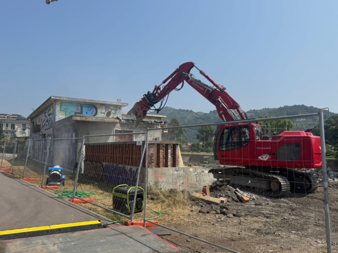 “Oggi iniziamo la demolizione della sottostazione elettrica, per poter fare la bonifica dei suoli, che fortunatamente dopo tutte le analisi durate molti anni, non abbiamo trovato particolarmente malmessi, ma hanno bisogno di una pulizia. Iniziamo la notifica dei terreni, in accordo con il progetto presentato alla Conferenza dei servizi, approvato dai tutti gli enti preposti e per poter bonificare i suoli, dobbiamo demolire alcuni fabbricati che si trovano subito sopra. Il primo che demoliremo oggi è al sottostazione elettrica, un fabbricato in cemento armato che ospitava tuti gli impianti per la derivazione elettrica, perché qui c’era una stazione di trattamento, di ripristino e di manutenzione dei treni, che aveva bisogno di tanto voltaggio e tanta corrente e lì veniva prodotta”.