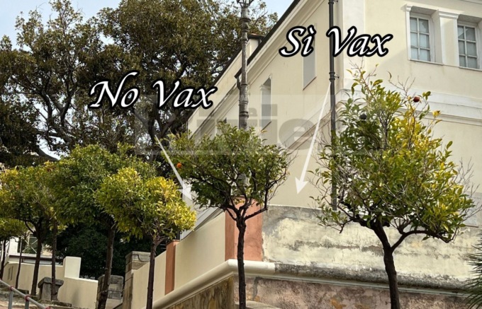 La scritta “sì vax” accanto a “no vax” è puramente indicativa, per dimostrare la contraddittorietà.