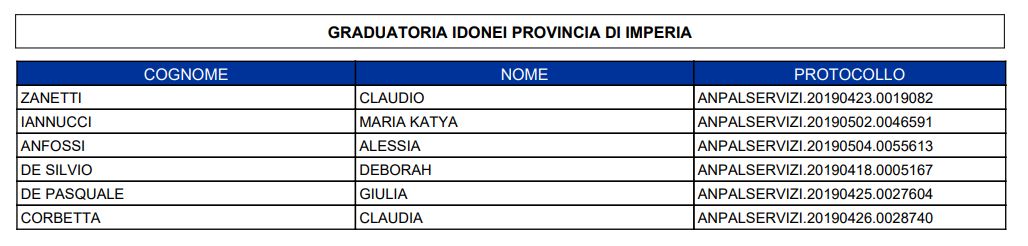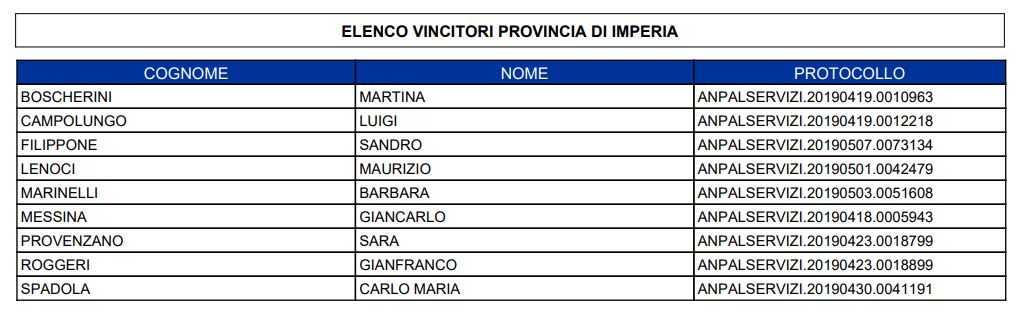 Concorso Navigator: ecco i vincitori (e gli idonei) per la provincia di Imperia. Sono stati infatti pubblicati  oggi, martedì 25 giugno, sul sito dell’Anpal servizi gli elenchi dei vincitori del concorso che si è svolto tra il 18 e il 20 giugno a Roma 18-19-20 giugno a Roma e le graduatorie degli idonei, per ciascuna provincia.