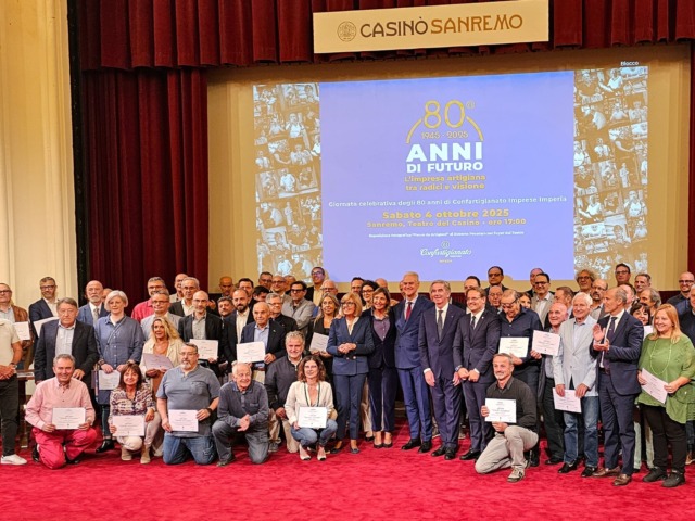Cerimonia, questo pomeriggio, al Teatro dell’Opera del Casinò di Sanremo, per Confartigianato Imperia che compie 80 anni.