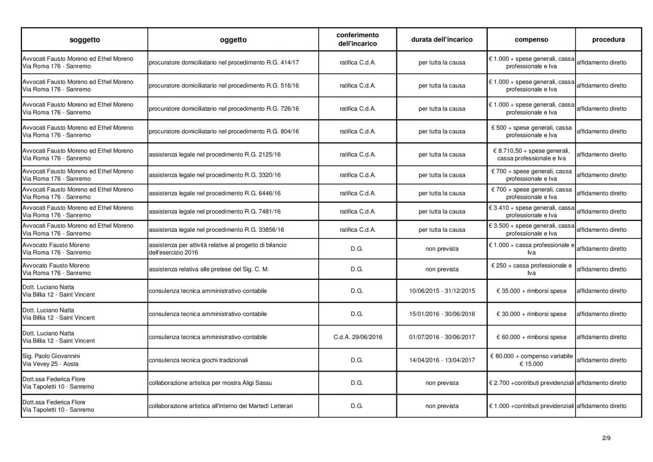 In allegato l’elenco completo di quanto pagato voce per voce dal maggio 2015 a fine 2017