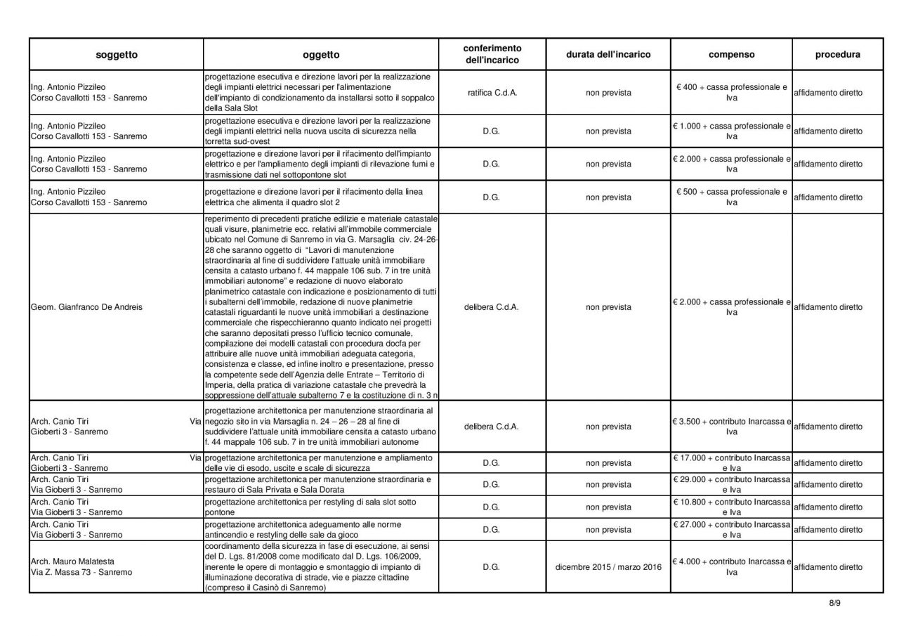 CONSULENZE CASINO’  – Ecco l’elenco: oltre un milione e 600mila euro in 30 mesi a 35 professionisti