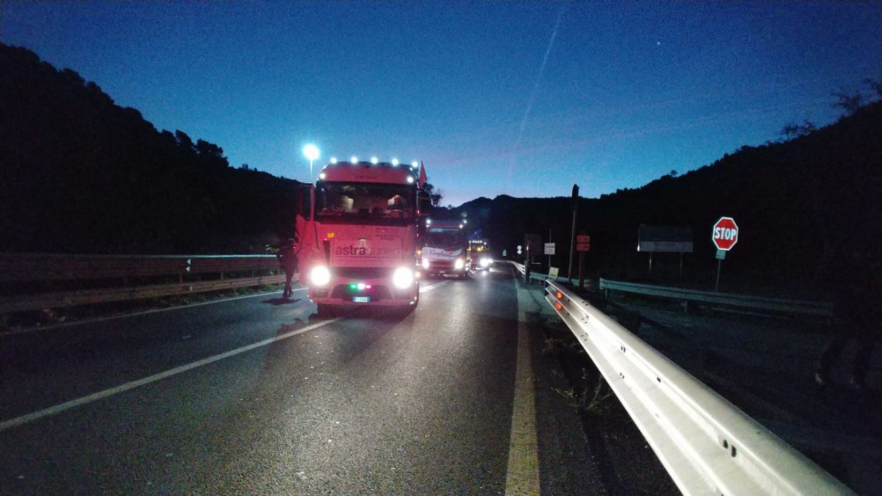 Corteo di tir lumaca sulla SS20 contro il divieto della Francia