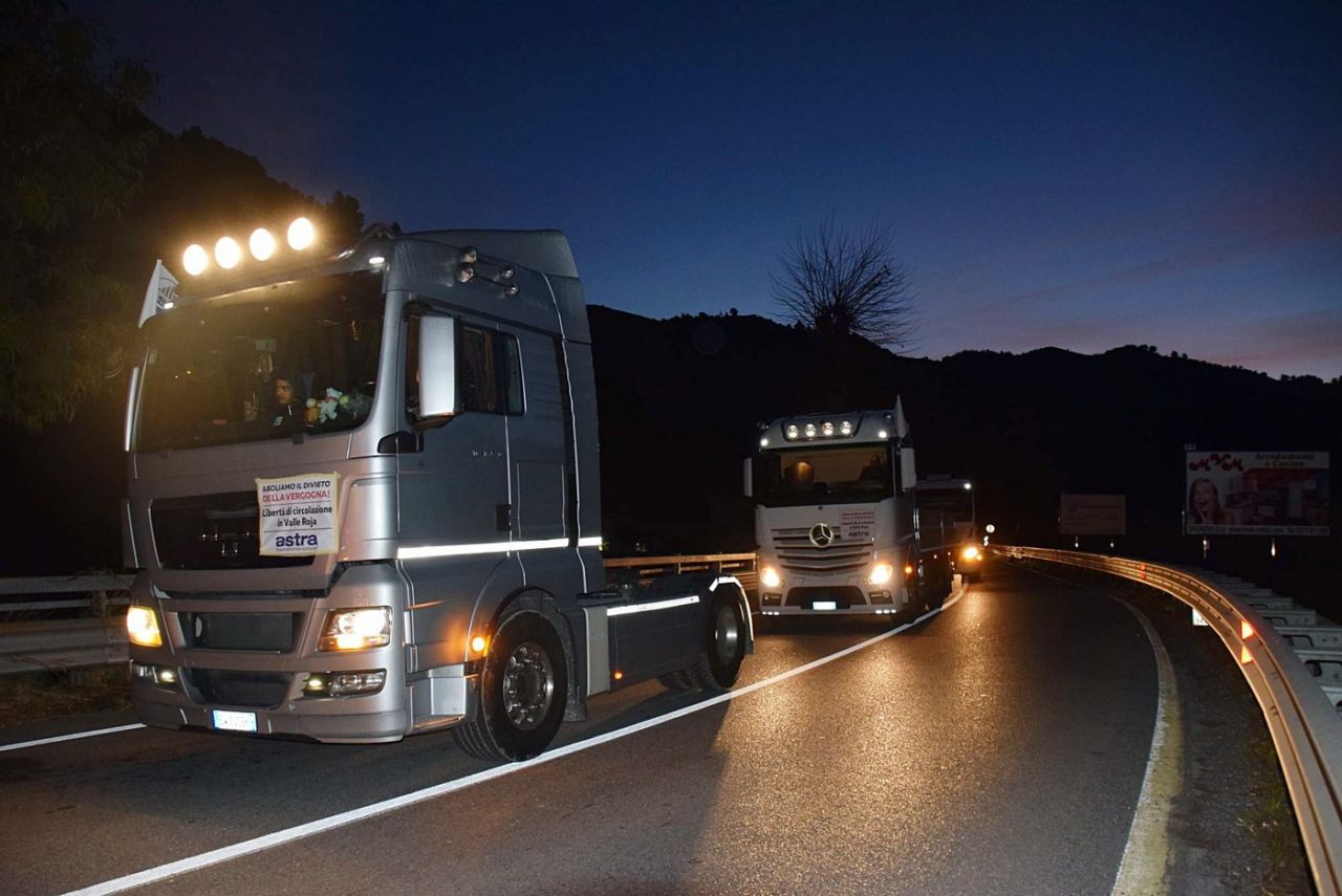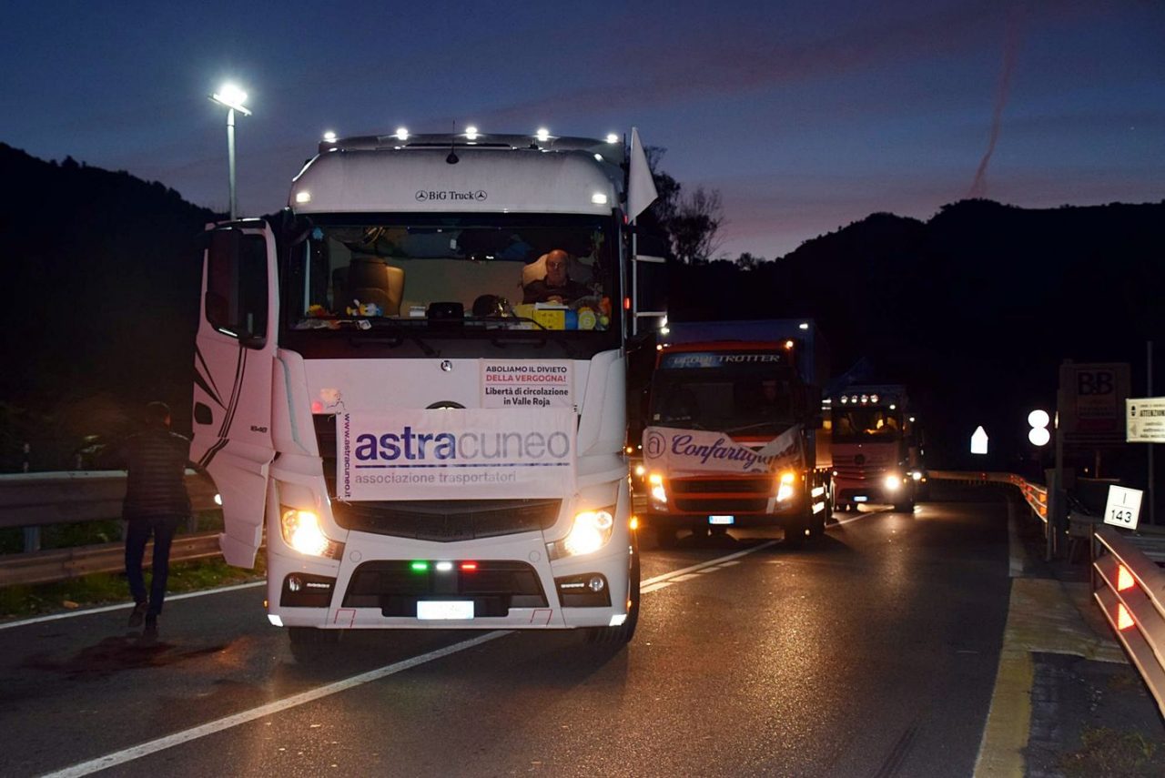 Sono una trentina gli autotrasportatori che dalle 6 circa, scortati dalla polizia stradale, hanno dato vita a un corteo di tir lumaca, sulla statale 20 della val Roja, contro la decisione delle autorità francesi di vietare il transito dei mezzi con stazza superiore alle 19 tonnellate in territorio transalpino. “Aboliamo il decreto della vergogna” è lo slogan della manifestazione, organizzata da Astra Trasportatori Associati.