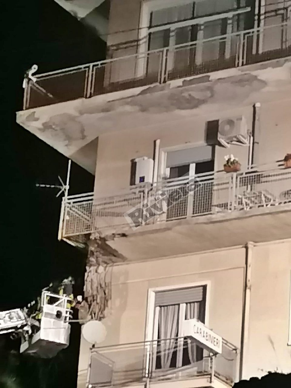 Parte del terrazzo di un alloggio di servizio della caserma della Stazione Carabinieri di Ospedaletti è crollata, in serata, per cause tuttora in fase di accertamento. Non ci sono feriti e sul posto sono presenti i vigili del fuoco. Accertamenti sono in corso per ricostruire la dinamica dell’accaduto e per verificare che non ci siano altre parti pericolanti. E’ probabile che venga fatto un sopralluogo anche domani con la luce del giorno.
