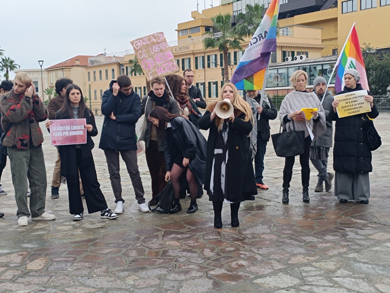 «Arcigay è qui –parole del presidente imperiese Pierluca Viani –  perché esistiamo per combattere le discriminazioni e le violenze sulle persone. E la campana è a tutti gli effetti una violenza. I diritti non sono scindibili. La 194 è una questione di dignità umana e la campana è un marchio morale in un luogo pubblico. Non vi importa della vita delle persone, ma di controllarle. Giù le mani dai nostri corpi e dalla nostra autodeterminazione»