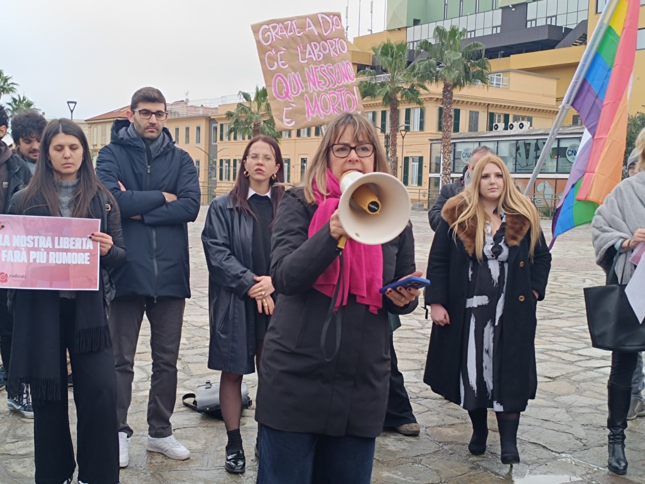 Quasi un centinaio di persone in Piazza Colombo alla manifestazione promossa dai Radicali Italiani contro la “campana dei bambini non nati”, l’iniziativa sull’aborto del vescovo della diocesi di Ventimiglia-Sanremo Antonio Suetta.