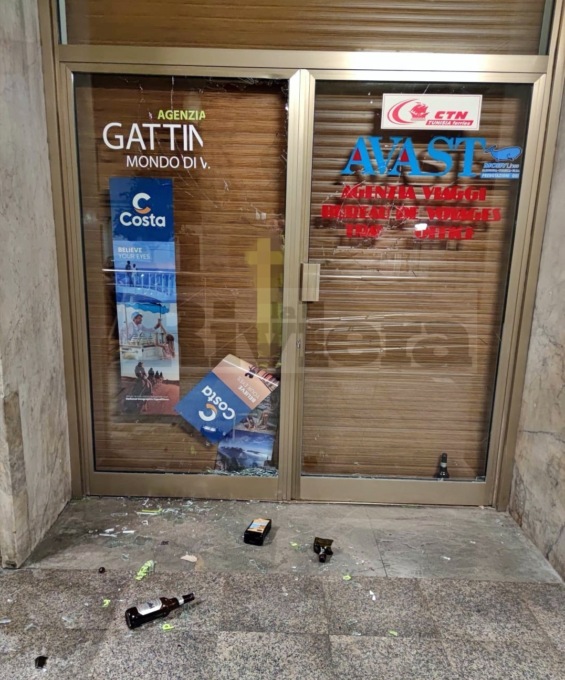 Le vetrine dell’agenzia di viaggi Avast, in piazza della Stazione, a Ventimiglia, sono state distrutte a bottigliate da ignoti, probabilmente la scorsa notte. La zona è solitamente frequentata da sbandati e ubriachi, che bivaccano giro o e notte. Accertamenti sono in corso per risalire ai colpevoli.