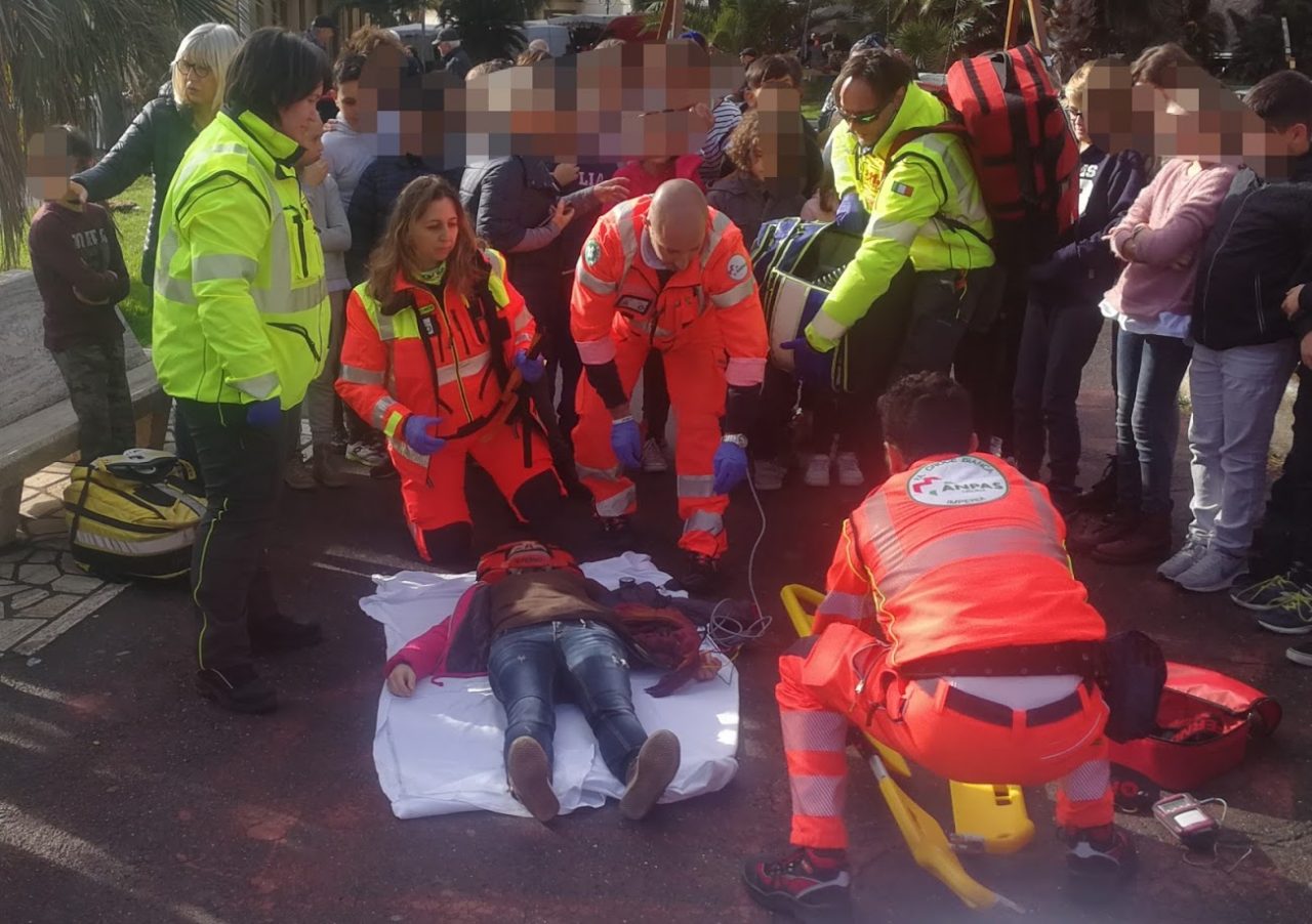 L’evento consisteva nell’effettuare una classica prova di evacuazione durante la quale una docente cadeva a terra e simulava una perdita di coscienza, a questo punto scattavano le classiche modalità di allerta dei soccorsi attraverso la chiamata di soccorso al NUE 112 e successivamente la richiesta alla centrale operativa del 118 di un’ambulanza e dell’automedica.