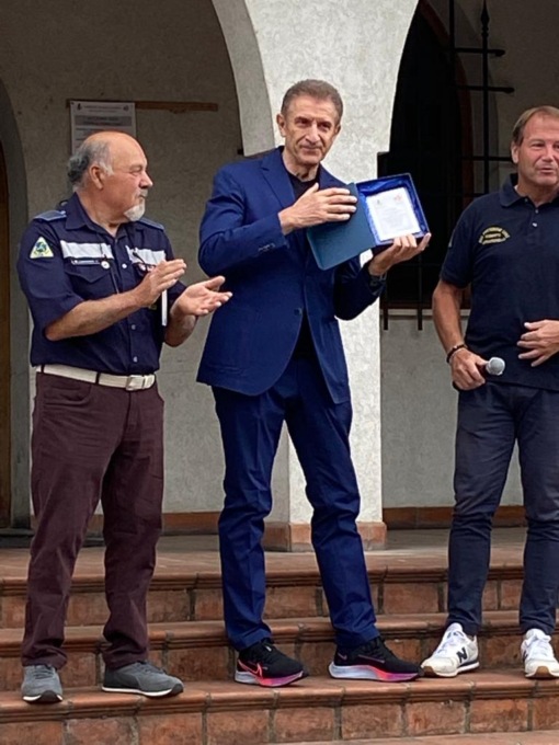 Il sindaco di Dolceacqua, Fulvio Gazzola e il presidente della locale  Protezione civile Paolo Cammareri, hanno consegnato alcuni attestati