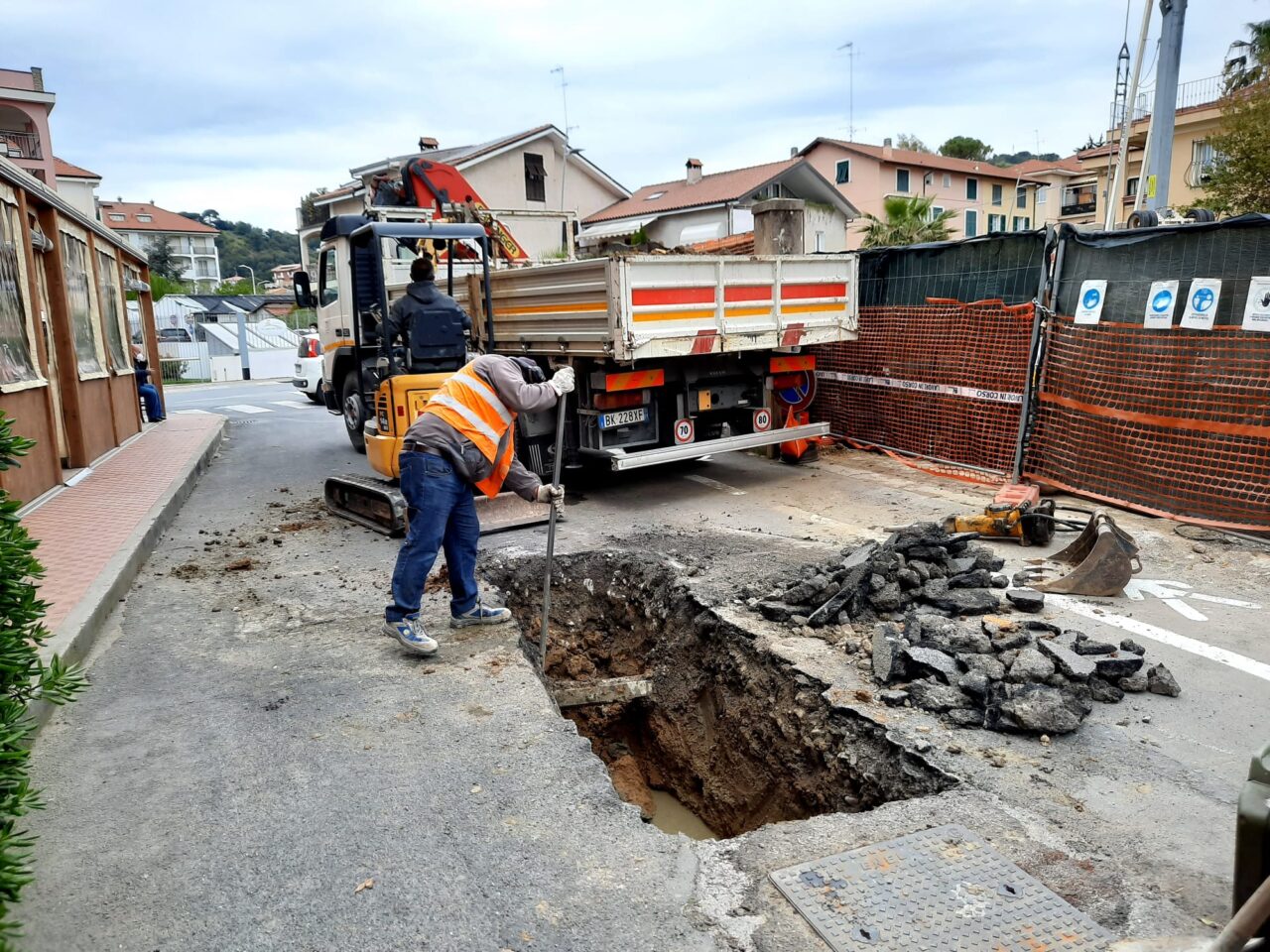 Il guasto è occorso nel tratto del condotto fognario, nel borgo del Golfo Dianese, in via Manzoni, da via Roma verso la bocciofila di San Bartolomeo al Mare, che ha ceduto sotto il peso degli anni.