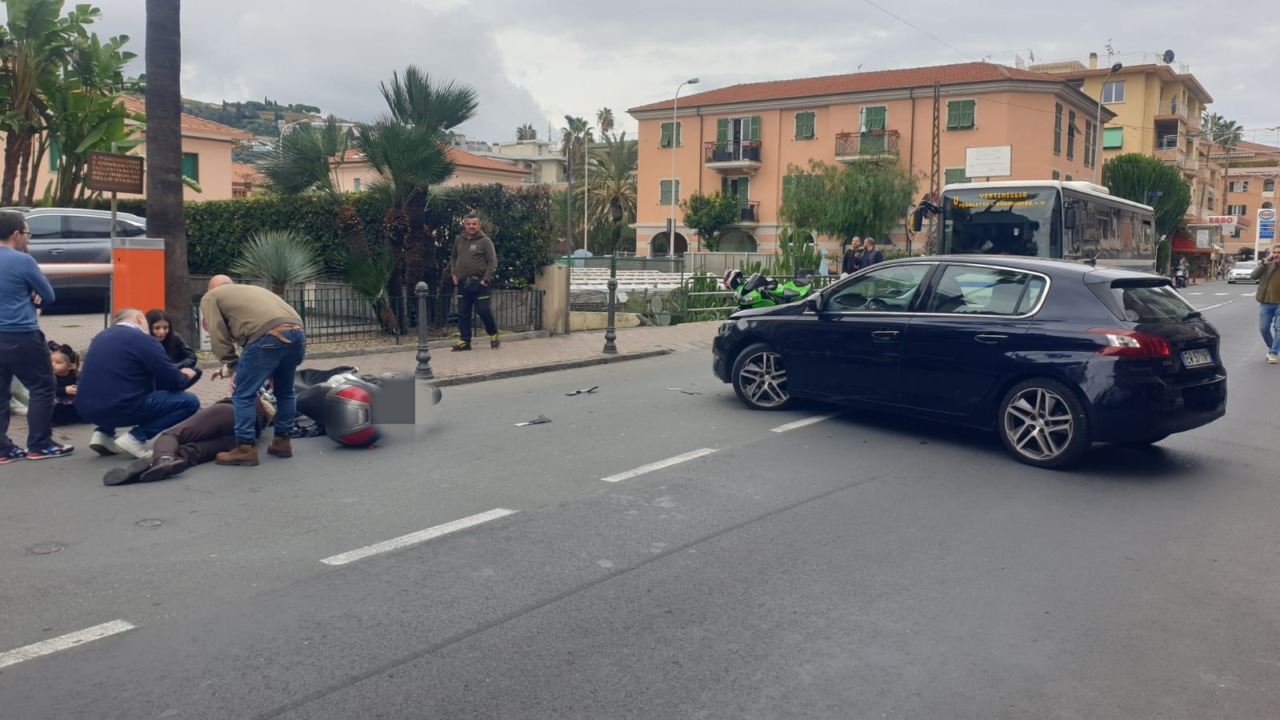 L’incidente in corso Vittorio Emanuele. La paziente trasportata in ospedale da un equipaggio della Croce Rossa diverso Ventimiglia.